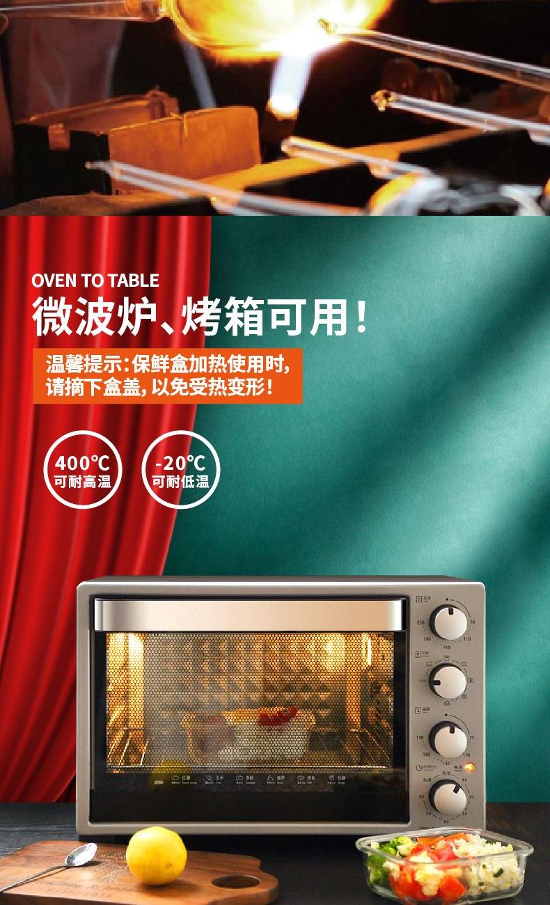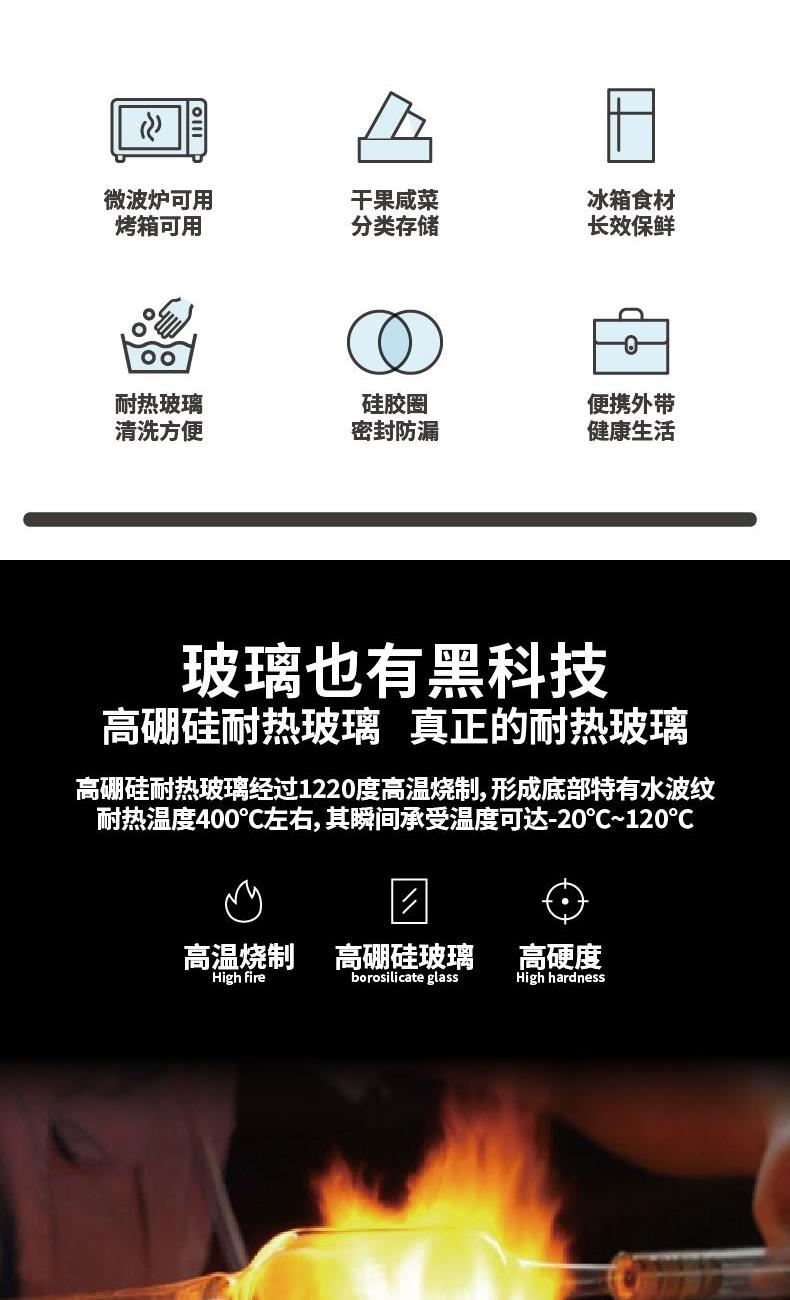 ·盒身高硼硅耐热玻璃材质,微波炉、烤箱使用OK!