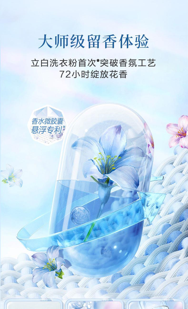 保质期:三年 香型:奇遇蓝风铃 产品成分:表面活性剂、抗再沉积剂、酶制剂、防腐剂、着色剂、防串色剂、蓝风铃香氛 卖点: 持久留香72小时 纳米护色科技 炫彩柔顺更护衣 污渍、细菌、异味一洗净