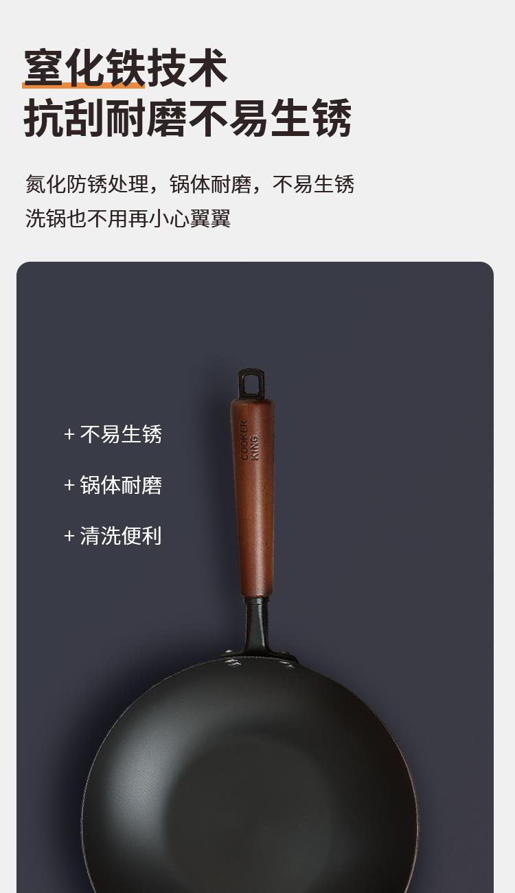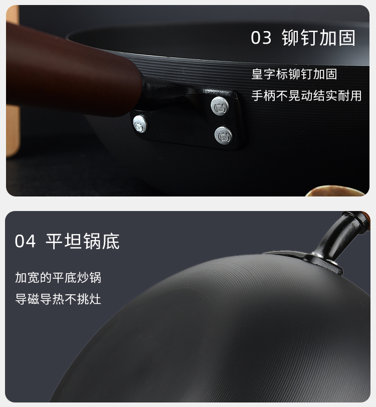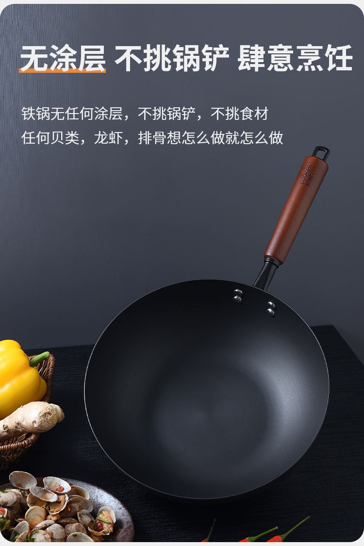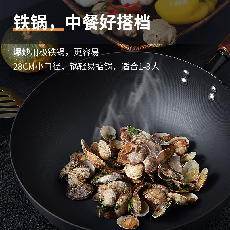 规格:口径28cm、材质:极铁 1,高纯精铁匠心铸造 氮化技术不易生锈好保养 2.锅底加厚储热性更好,锅壁薄传热快,快速升温,更适合爆炒。 3.氮化防锈处理,锅体耐磨,不易生锈洗锅也不用再小心翼翼 4.铁锅使用后,及时清洗干净,并用小火把锅身烘干,不要有水,这样可有效避免锅体生锈,延长铁锅使用寿命.