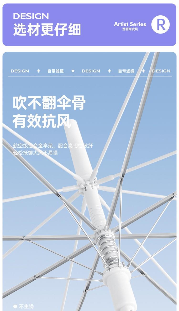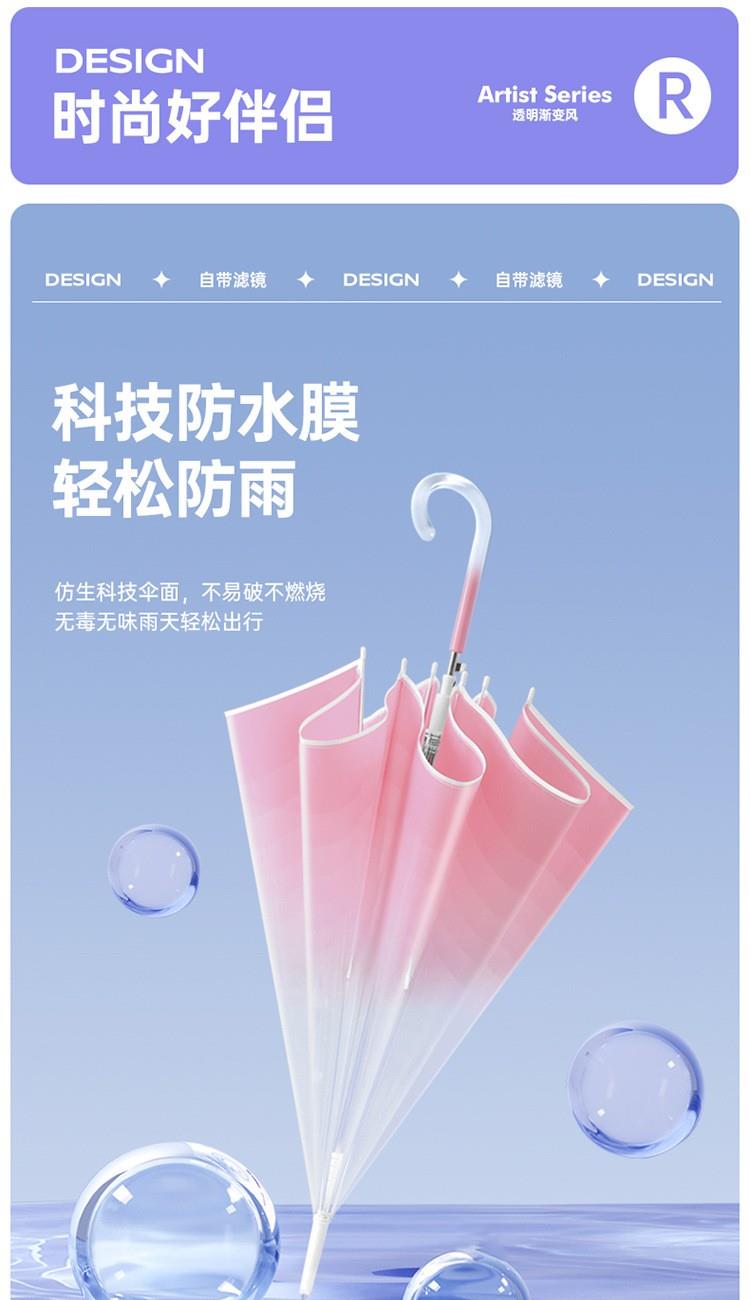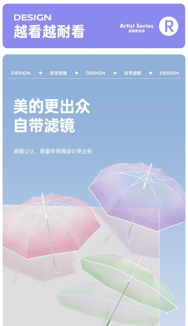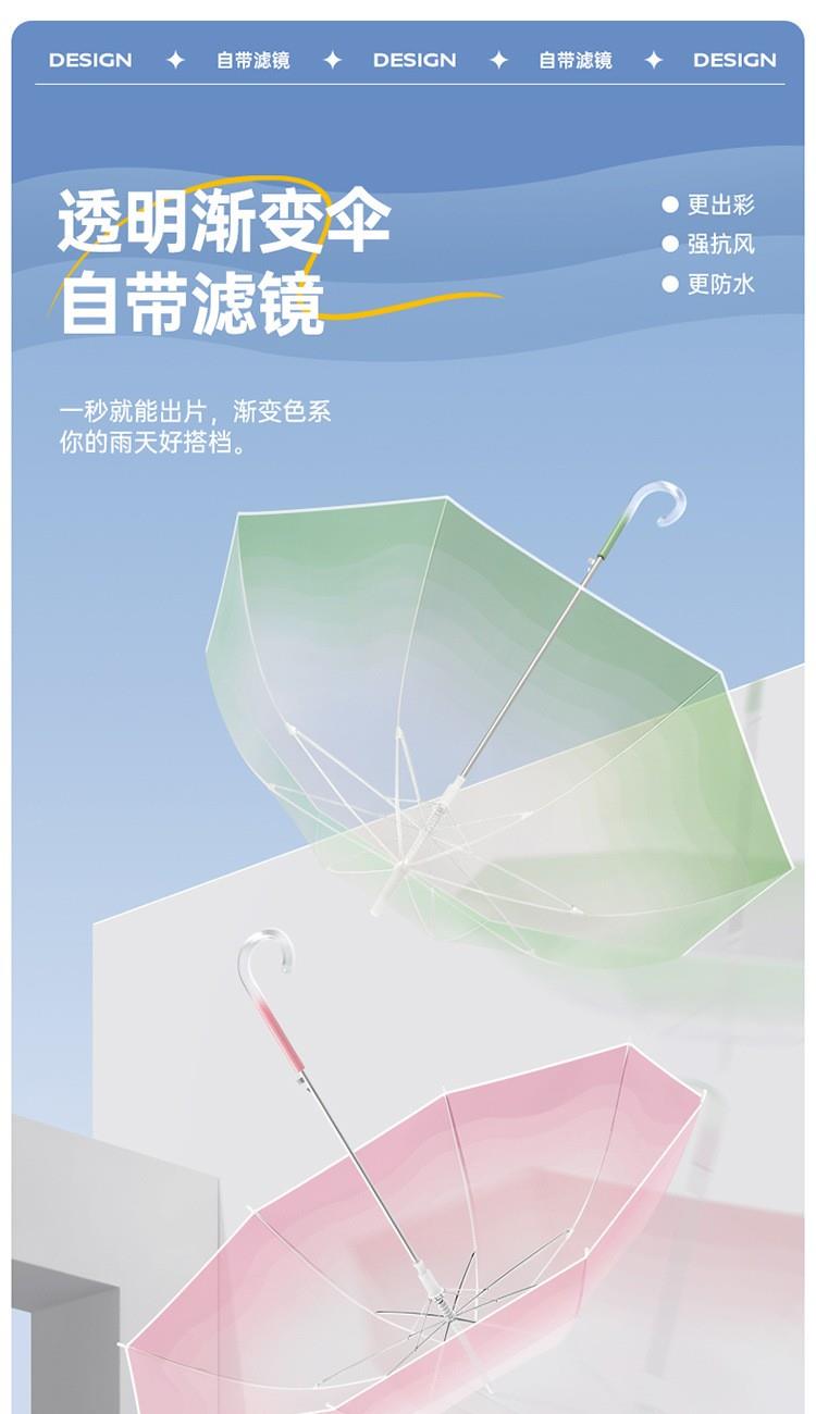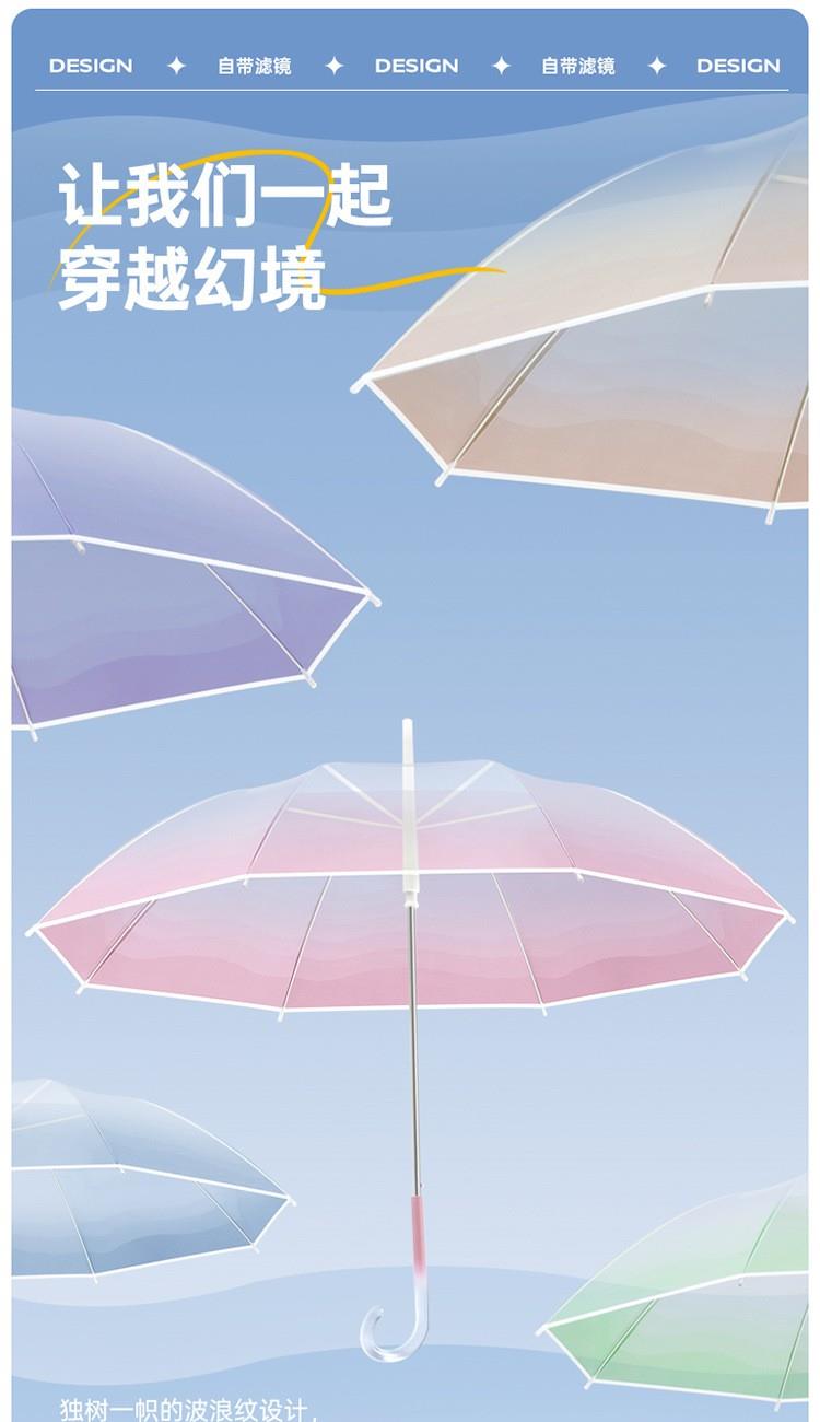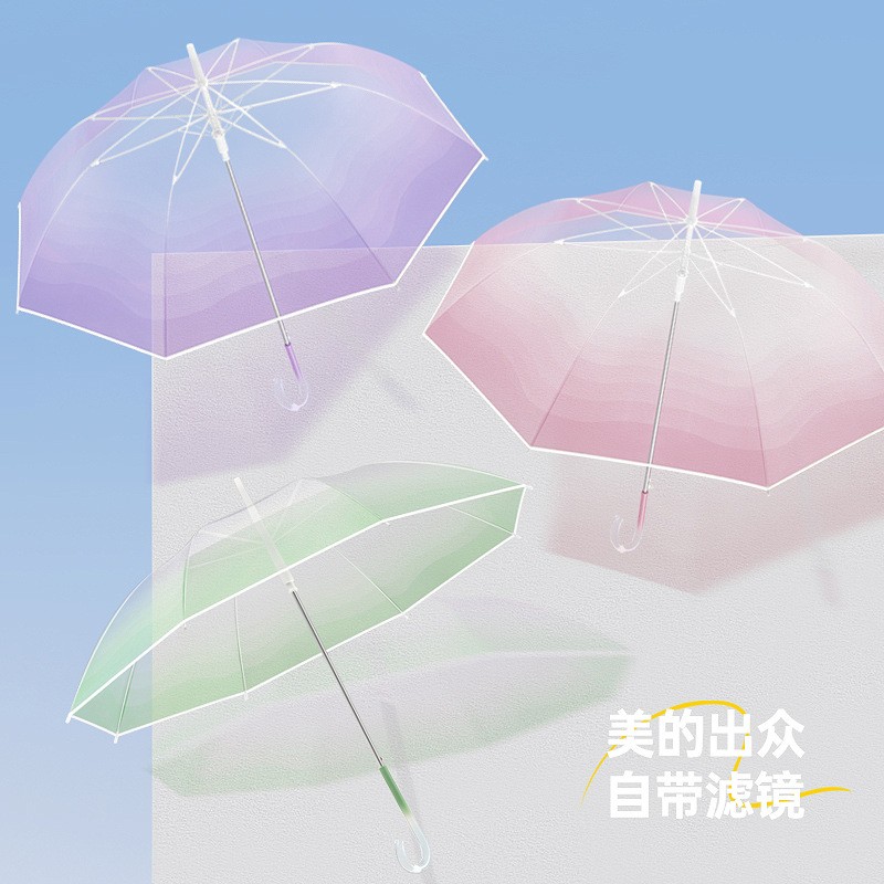 美立方夏季新款盐系渐变色透明伞直骨伞自动
