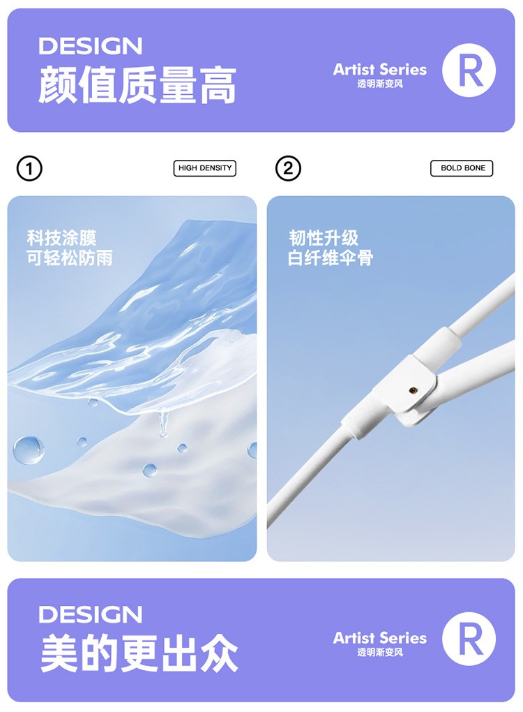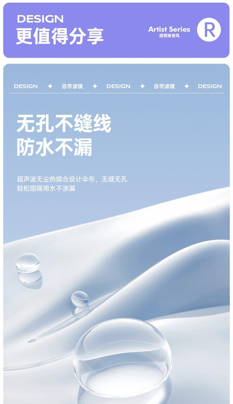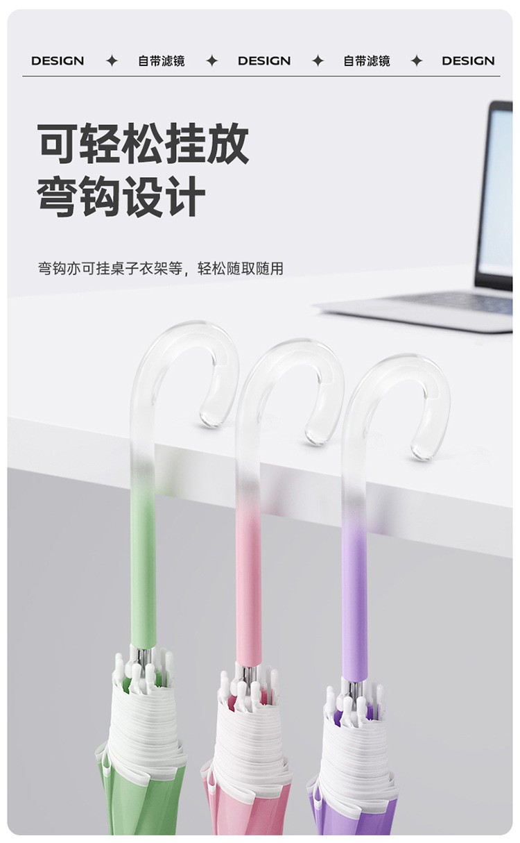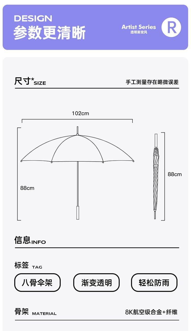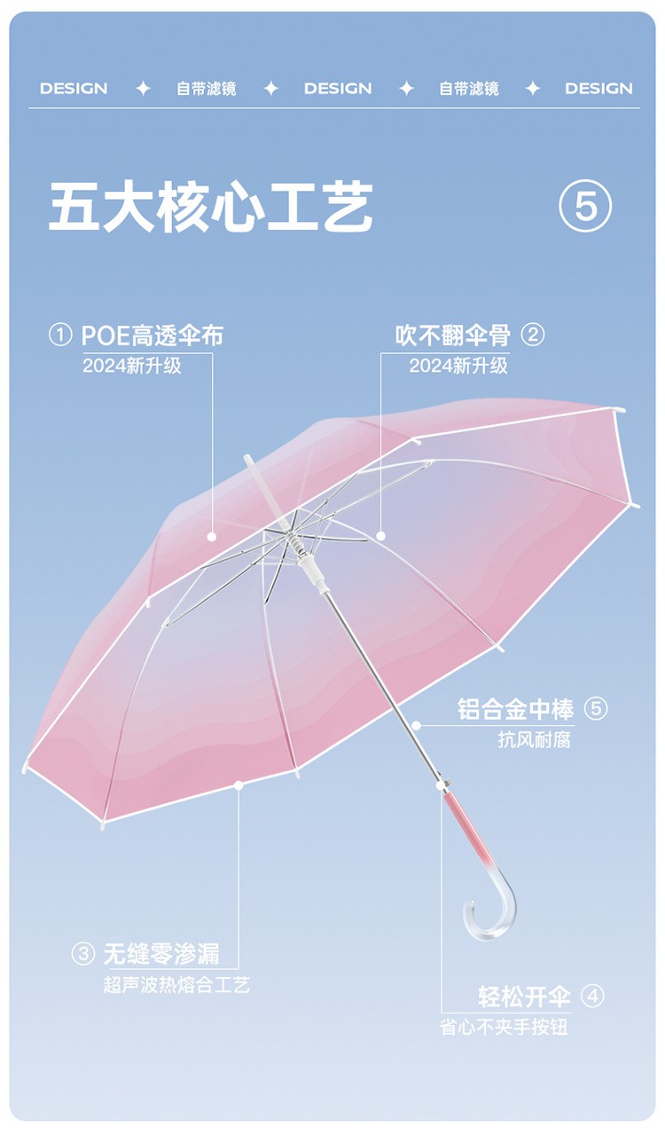 美立方夏季新款盐系渐变色透明伞直骨伞自动