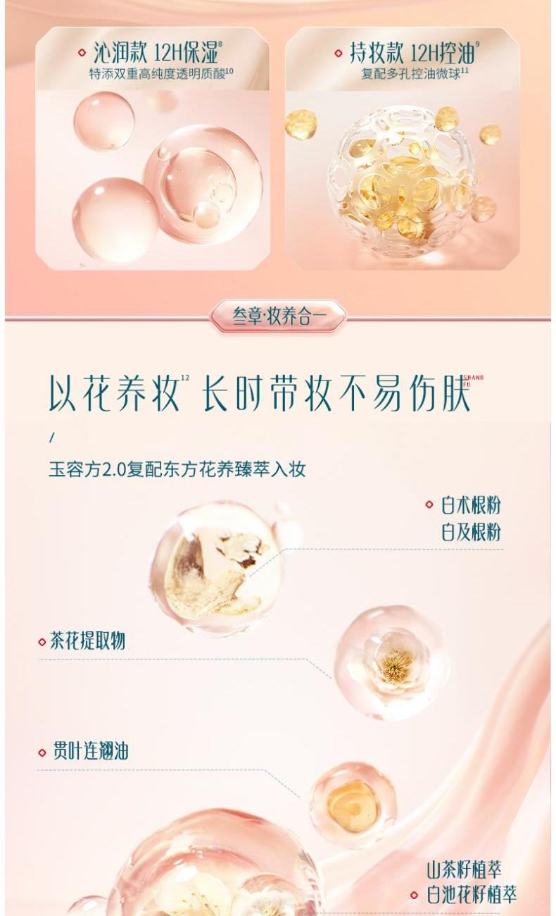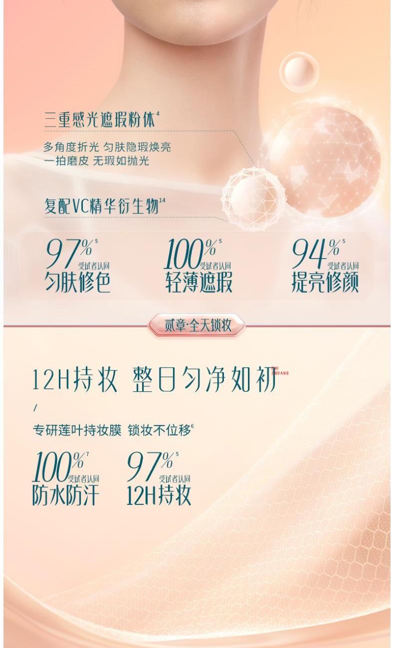 规格:11g*2 卖点: 1.一拍三效匀遮亮 速成无瑕妆,12H持妆整日匀净如初; 2.以花养长时带妆不易伤肤,近万人肤色调研,定制东方3色。
