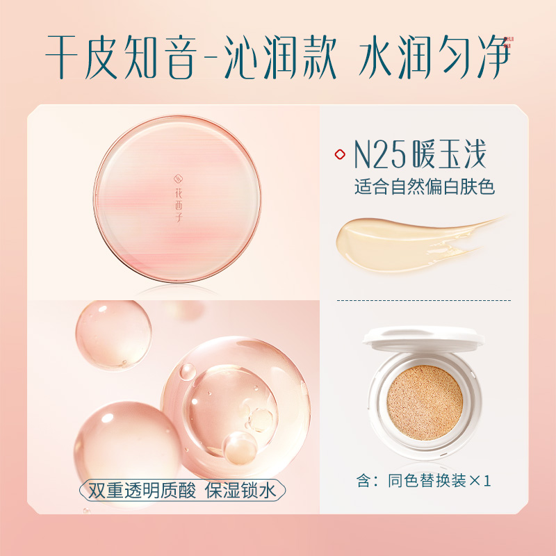 花西子玉容无瑕气垫粉底液沁润款N25暖玉浅11g(一正一替)