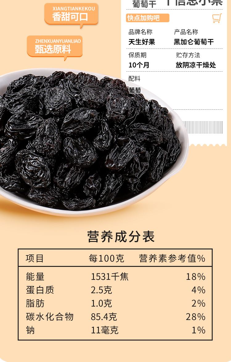 天生好果黑加仑葡萄干200克 保质期:10个月