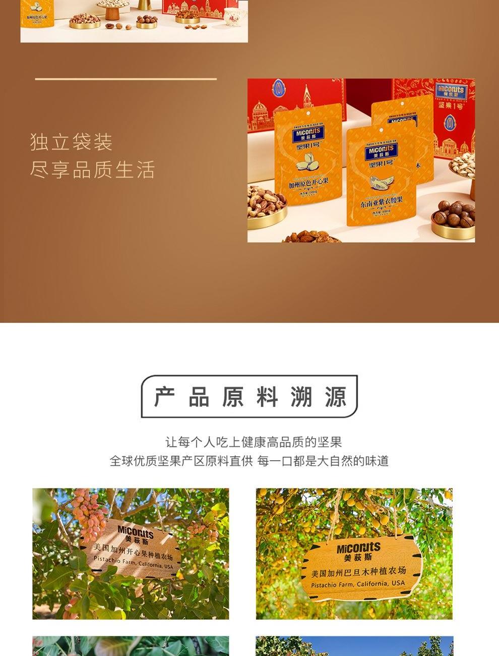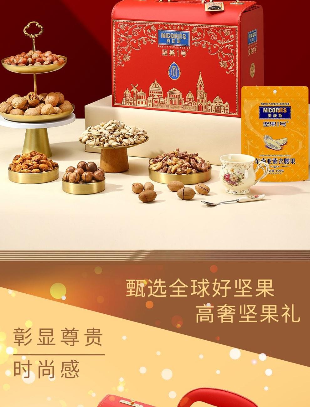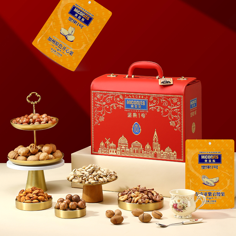 加州原色开心果 100g*1 加州NP巴旦木 100g*1 东南亚紫衣腰果 100g*1 南非珍宝碧根果 100g*1 南非夏威夷果 100g*1 北美大榛子 100g*1 手剥轻熟核桃 100g*1 智利西梅 180g*1 东南亚黄蕉干 280g*1 南美提子干 280g*1 波斯枣 480g*1 泰国龙眼干 300g*1 合计:2220g