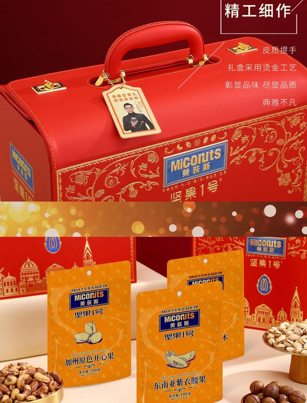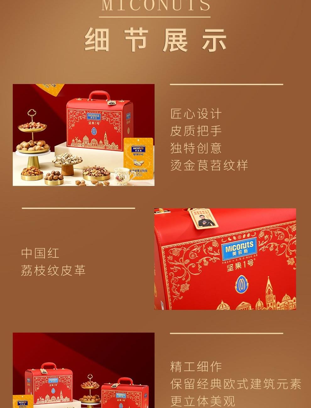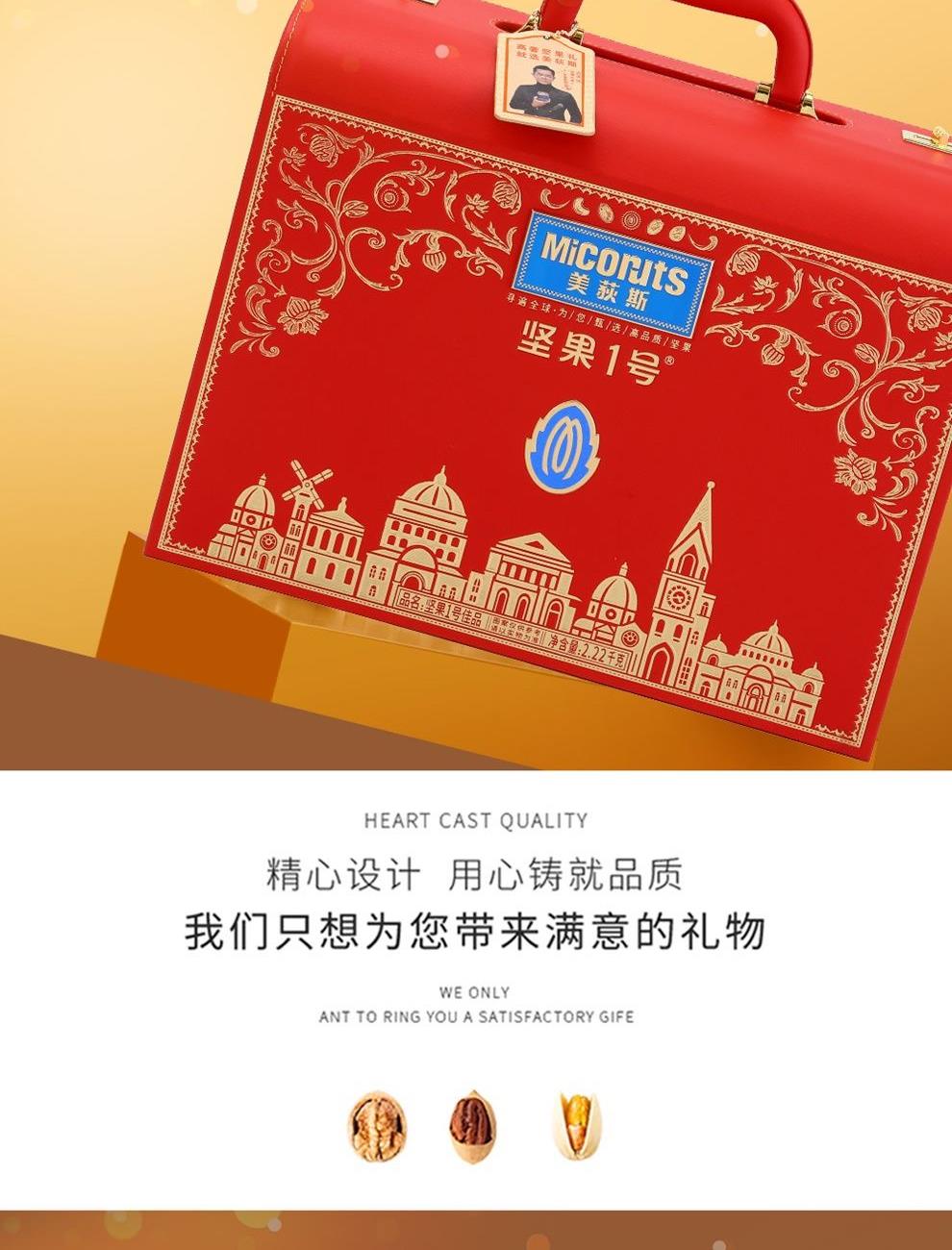 加州原色开心果 100g*1 加州NP巴旦木 100g*1 东南亚紫衣腰果 100g*1 南非珍宝碧根果 100g*1 南非夏威夷果 100g*1 北美大榛子 100g*1 手剥轻熟核桃 100g*1 智利西梅 180g*1 东南亚黄蕉干 280g*1 南美提子干 280g*1 波斯枣 480g*1 泰国龙眼干 300g*1 合计:2220g