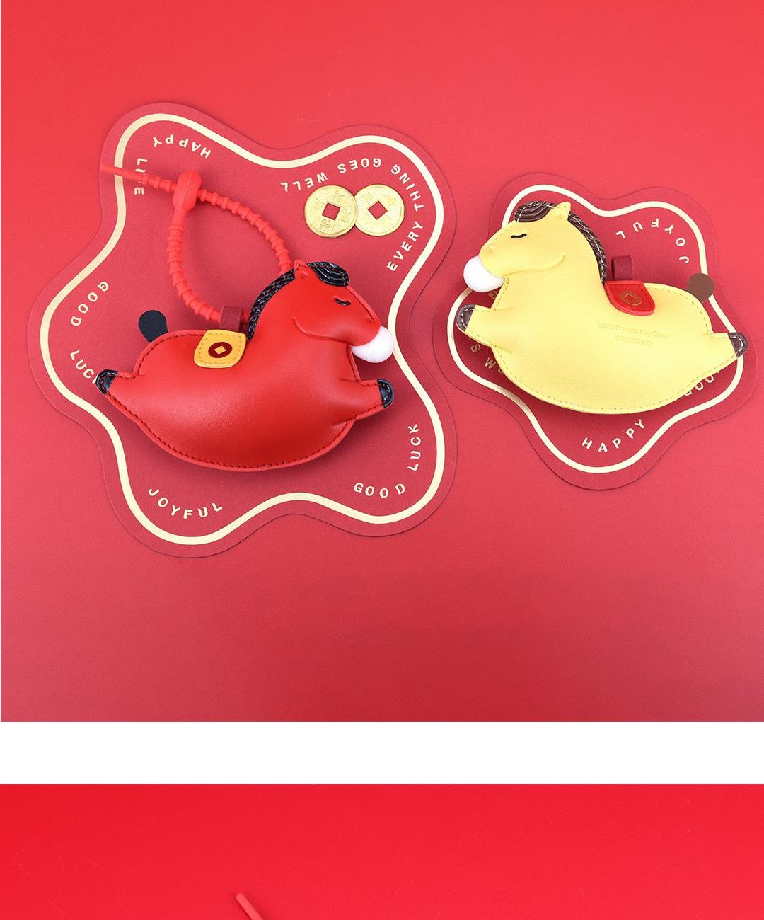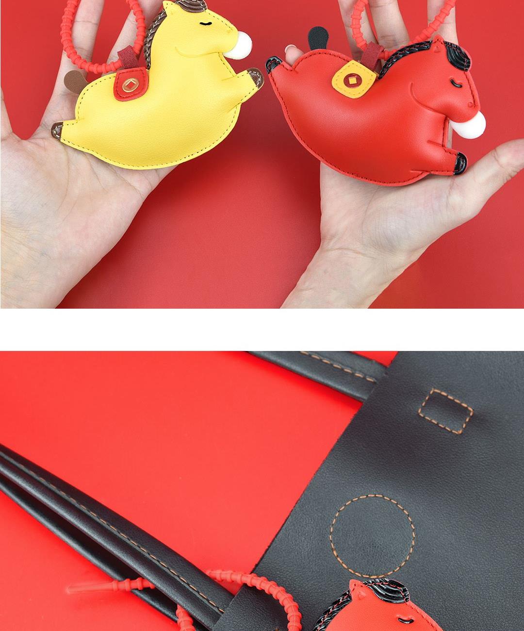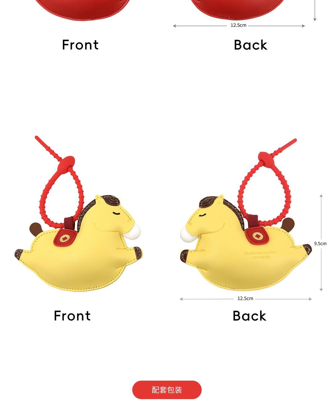 黄色(约12.5cmX9.5cm) 红色(约12.5cmX9.5cm) 大小大概是一只掌心大小 产品可多功能使用 如做包挂挂件/钥匙扣/车挂件 选料选用PU皮材质,耐磨耐用不易变形 内里填棉线,柔软有弹性 做工上精致的缝合走线,牢固不脱线 挂件边缘皮革手工多边打磨,不毛糙,经久耐用