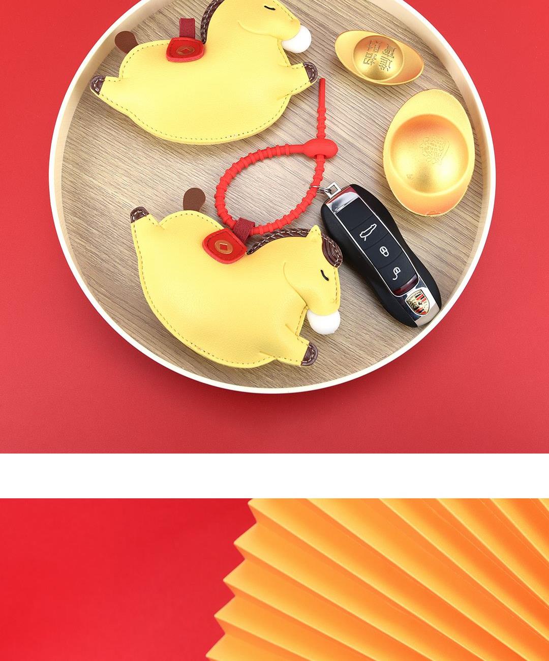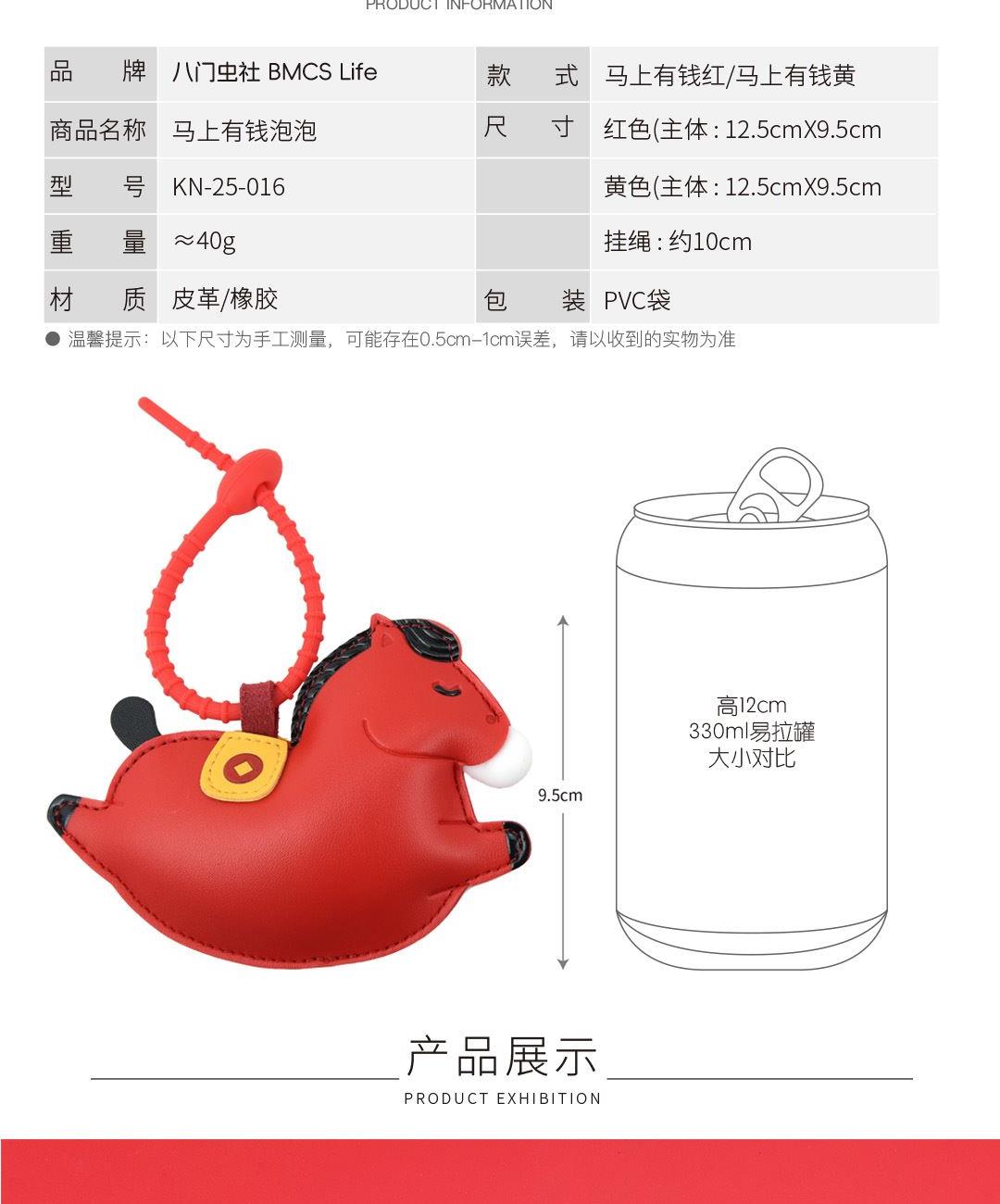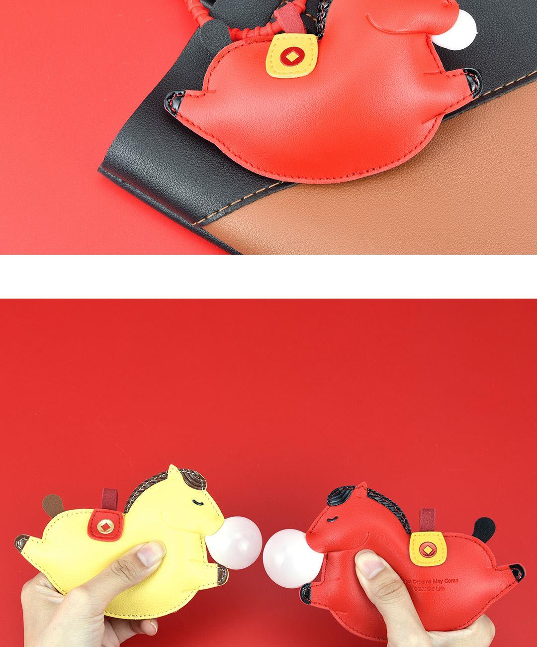 黄色(约12.5cmX9.5cm) 红色(约12.5cmX9.5cm) 大小大概是一只掌心大小 产品可多功能使用 如做包挂挂件/钥匙扣/车挂件 选料选用PU皮材质,耐磨耐用不易变形 内里填棉线,柔软有弹性 做工上精致的缝合走线,牢固不脱线 挂件边缘皮革手工多边打磨,不毛糙,经久耐用