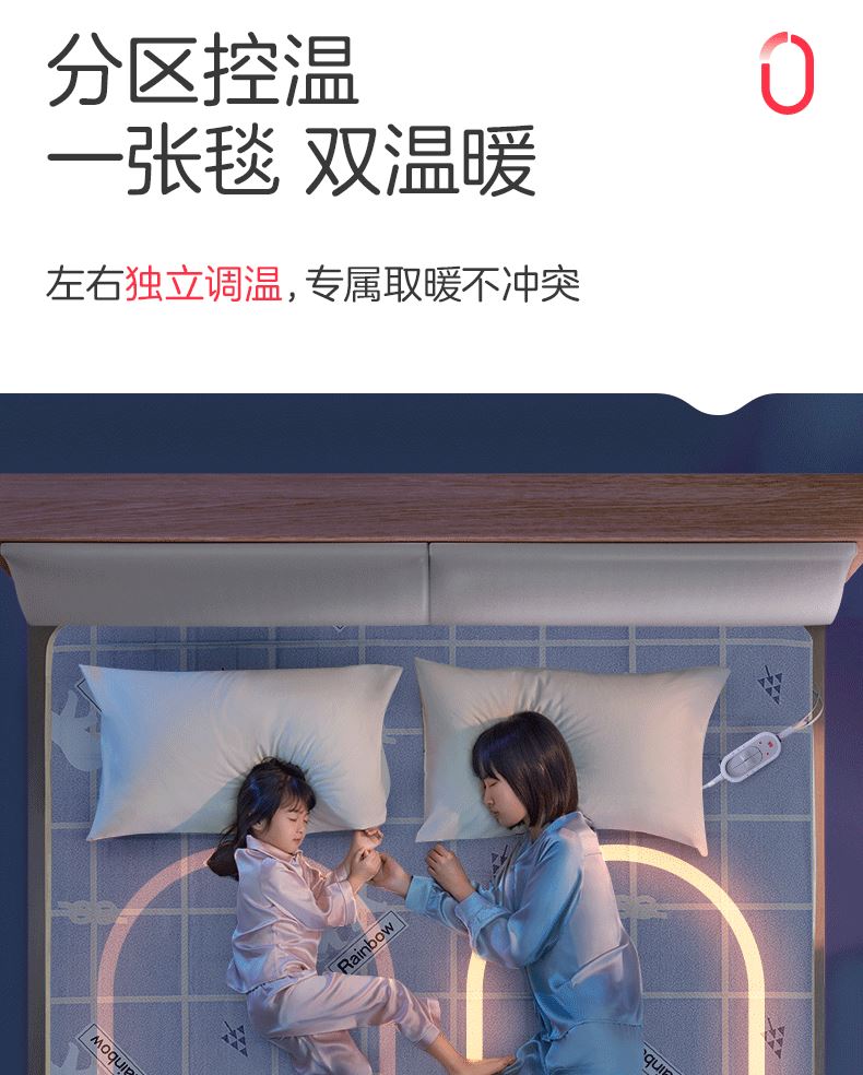彩虹双温双控化纤印花双人电热毯1.8*1.5米XL1352