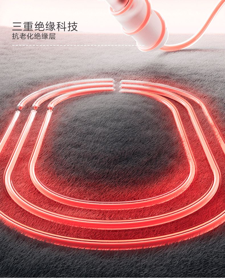 参数: 型号:TT180×150-2X 功率:110W 功能:双控双温,排潮除湿 面料:化纤 包装:无纺布袋 卖点: 1、全线路安全保护双控双温电热毯,左右独立控制,遇水遇尿不漏电 2、采用双层螺旋发热线和特别安全保护控制器,实现高温断电保护 3、低能耗,每晚不到一度电