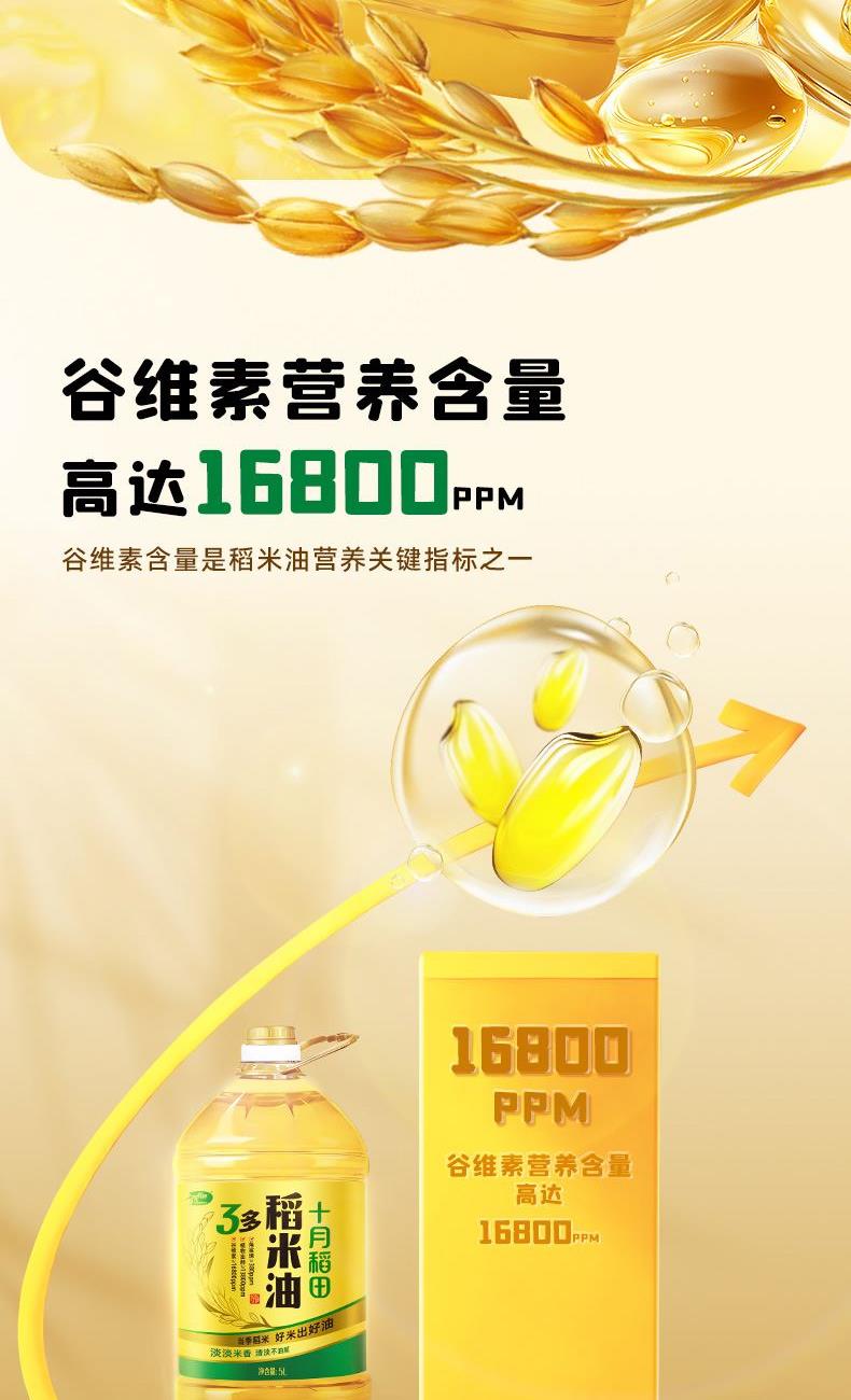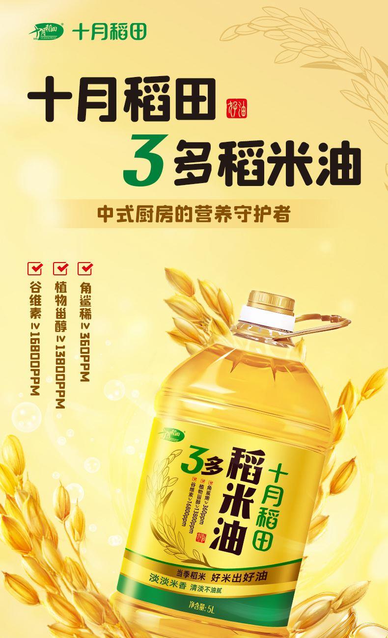 产品信息 名 称:十月稻田 稻米油5L 编 码:6971599059394 保质期:18个月 原粮产地:辽宁省盘锦市 不发货区域:新疆、西藏等偏远地区 卖点:谷维素、植物甾醇、角鲨烯3多稻米油,烟点高,油烟少,适合中式烹饪,不易产生有害物质