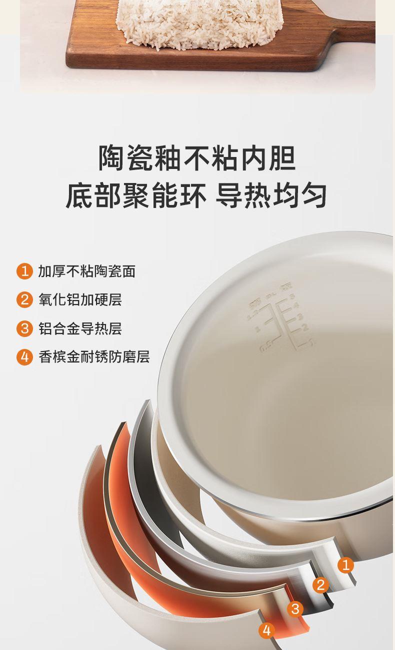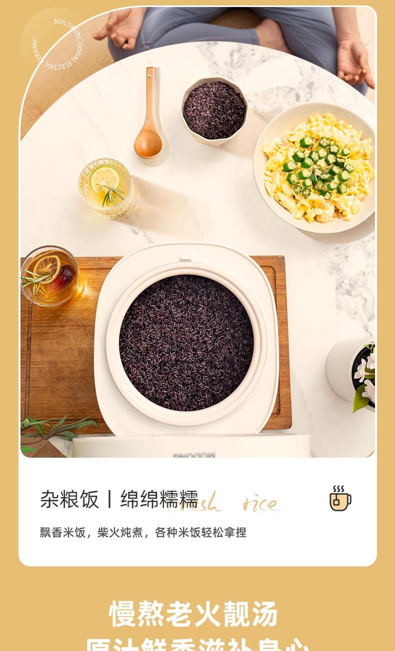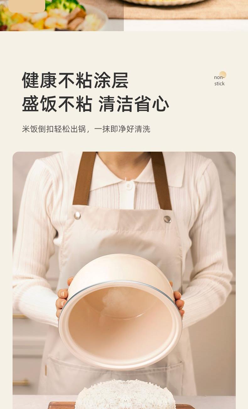 产品净重:2.25KG 产品毛重:3.0KG 额定功率:650W 额定电压:220V~ 容量:3L 内含:主机x1、内胆x1、饭勺x1、量杯x1、PP蒸笼 x1、电源线x1 1.隐形面板、电脑触控 2.操作简易、健康省心 3.自动温控、可控可靠 4.智能微电触摸控制,24小时预约,多功能一键煮饭,焖炖煮蒸样样精通