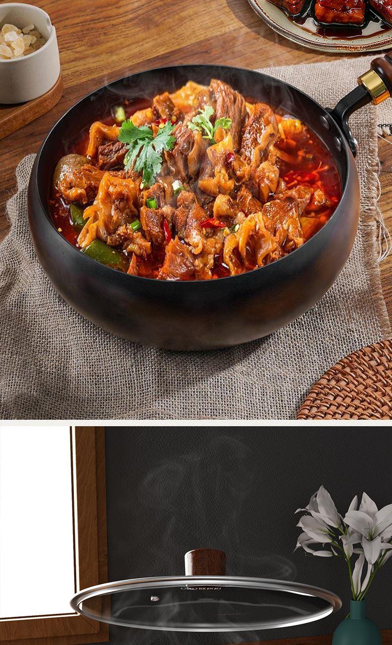 古法铁锅,来自匠人的坚守 0涂层,纯铁锅,肚大锅深,一锅多用 1000℃高温炼制,12道工序 煎煮焖炖,三餐好味,轻而易举 21cm木制手柄,隔热防烫,握感舒适 玻璃锅盖,清晰透明可关注动态 产品规格:直径26cm 产品材质:铁 彩盒尺寸:49*16*29.5 外箱尺寸:51*50*62cm