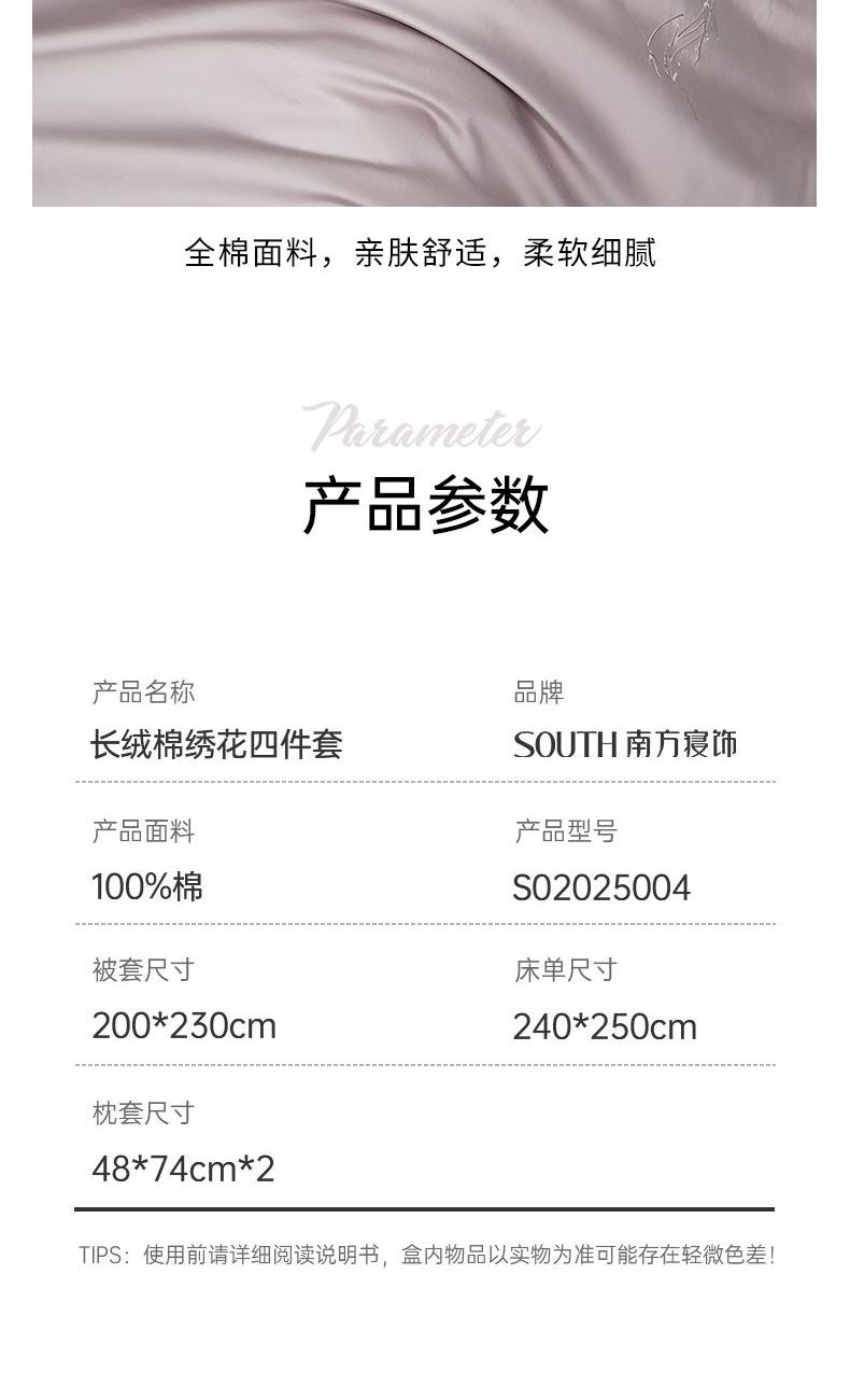 南方寝饰长绒棉绣花四件套S02025004