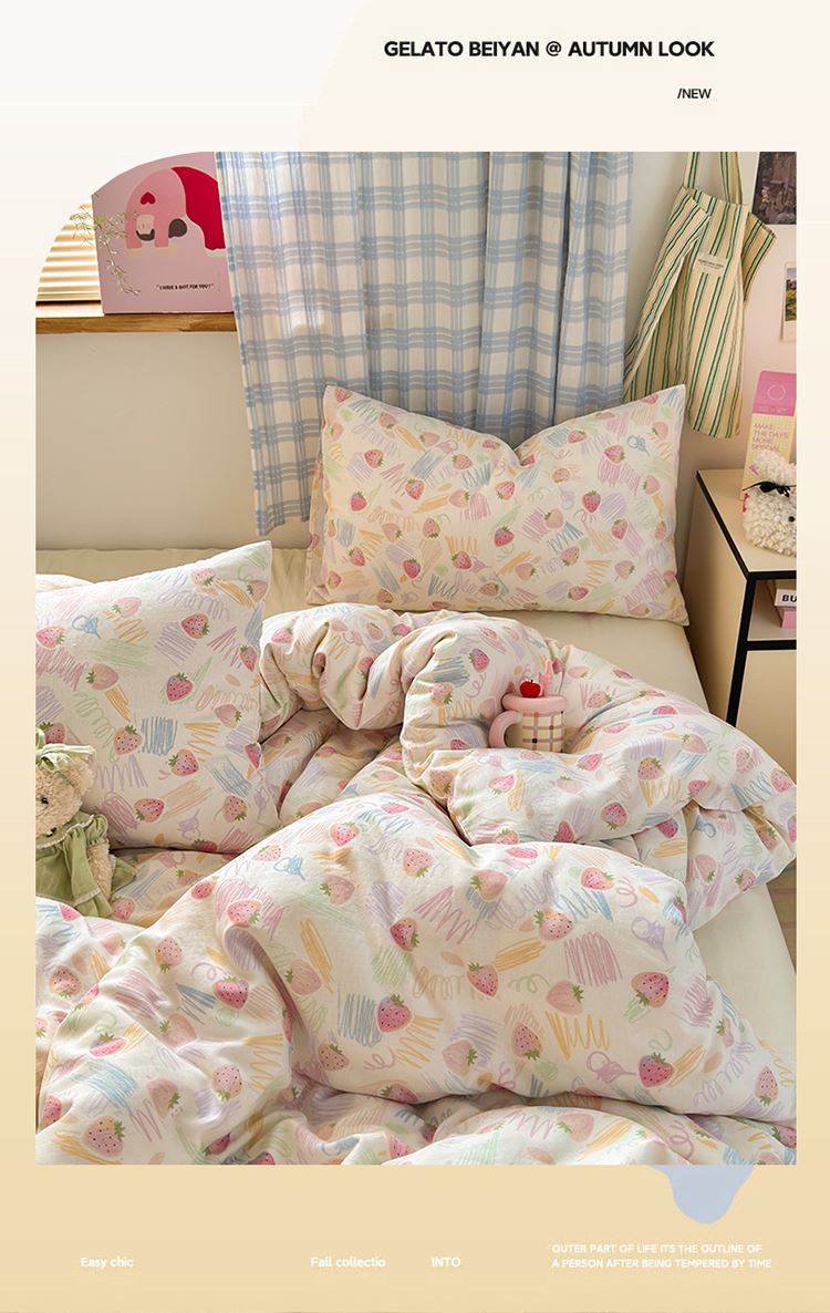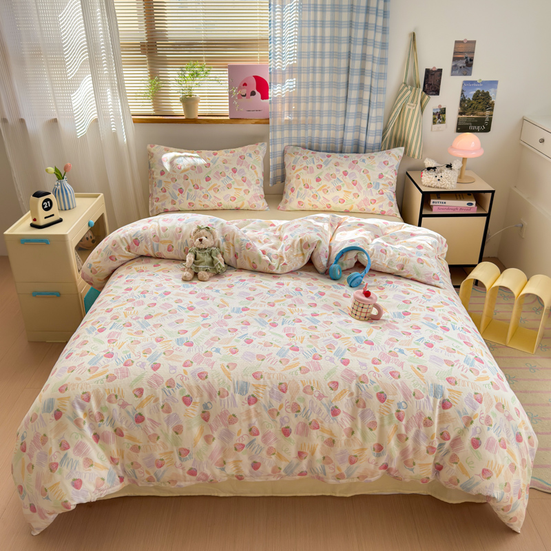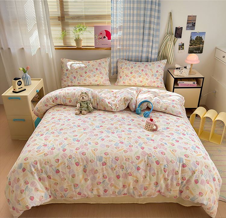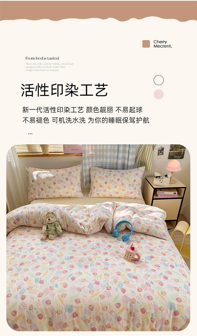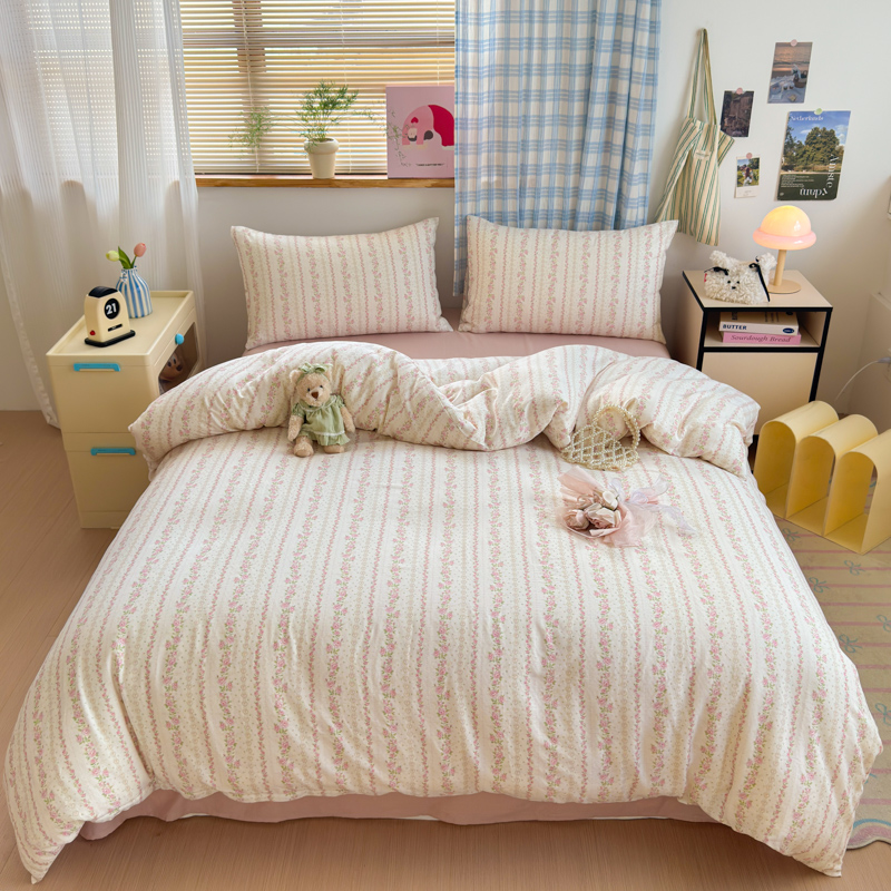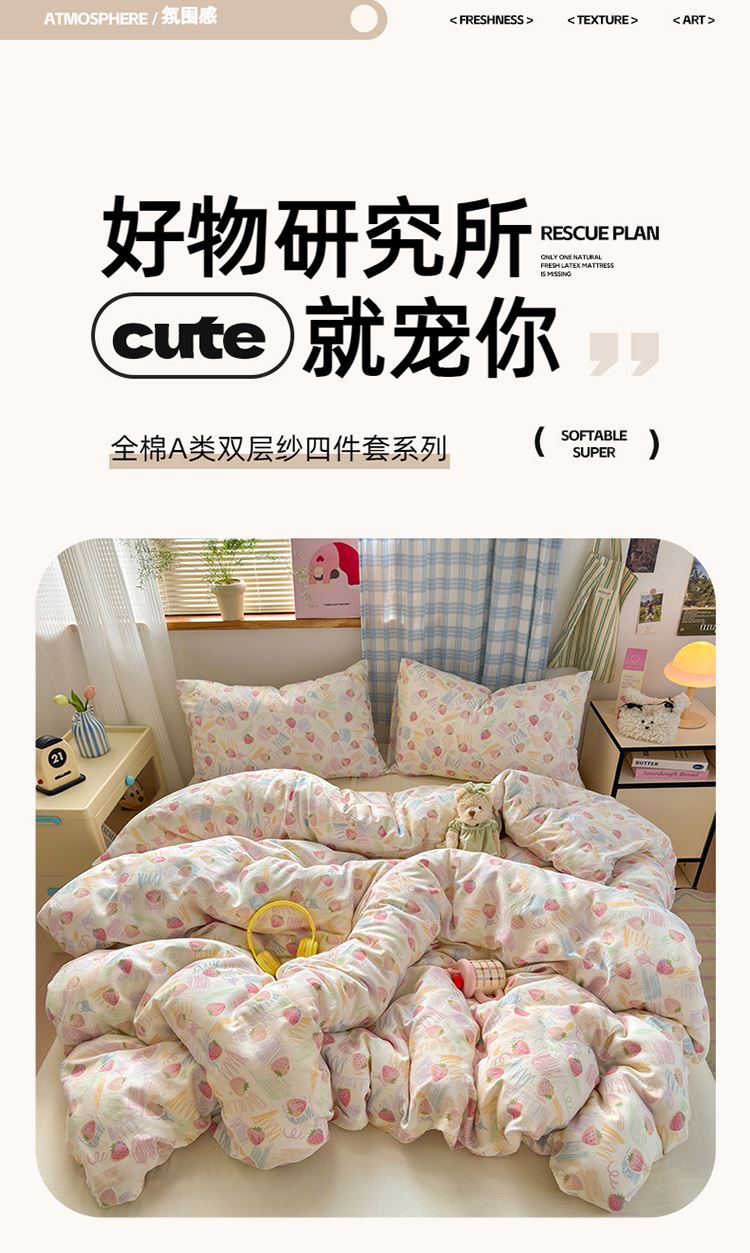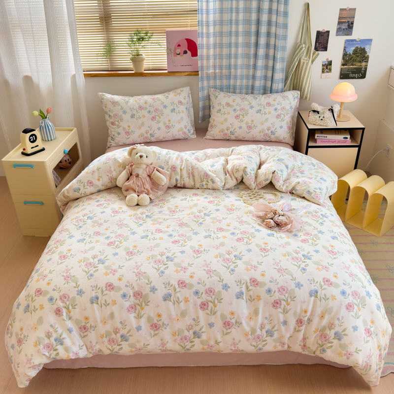 花花公子-家纺-新疆棉全棉双层纱小清新四件套-花开半夏