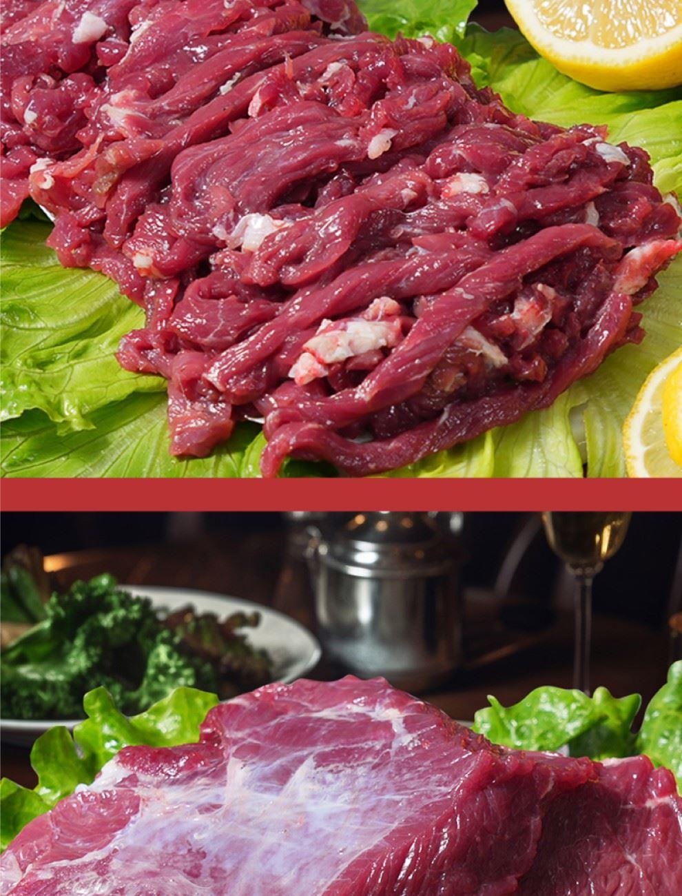 1.热切鲜肉通体吊龙500g 2.热切鲜牛里脊500g 3.热切鲜牛腿肉500g 4.热切鲜牛腩肉500g 5.热切鲜牛腱子500g 6.面筋鲜牛肉宝500g 7.热切鲜牛蝎子500g