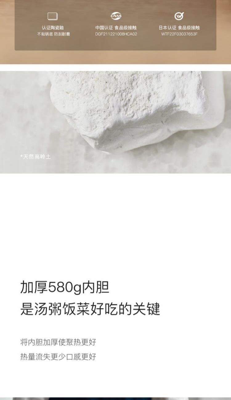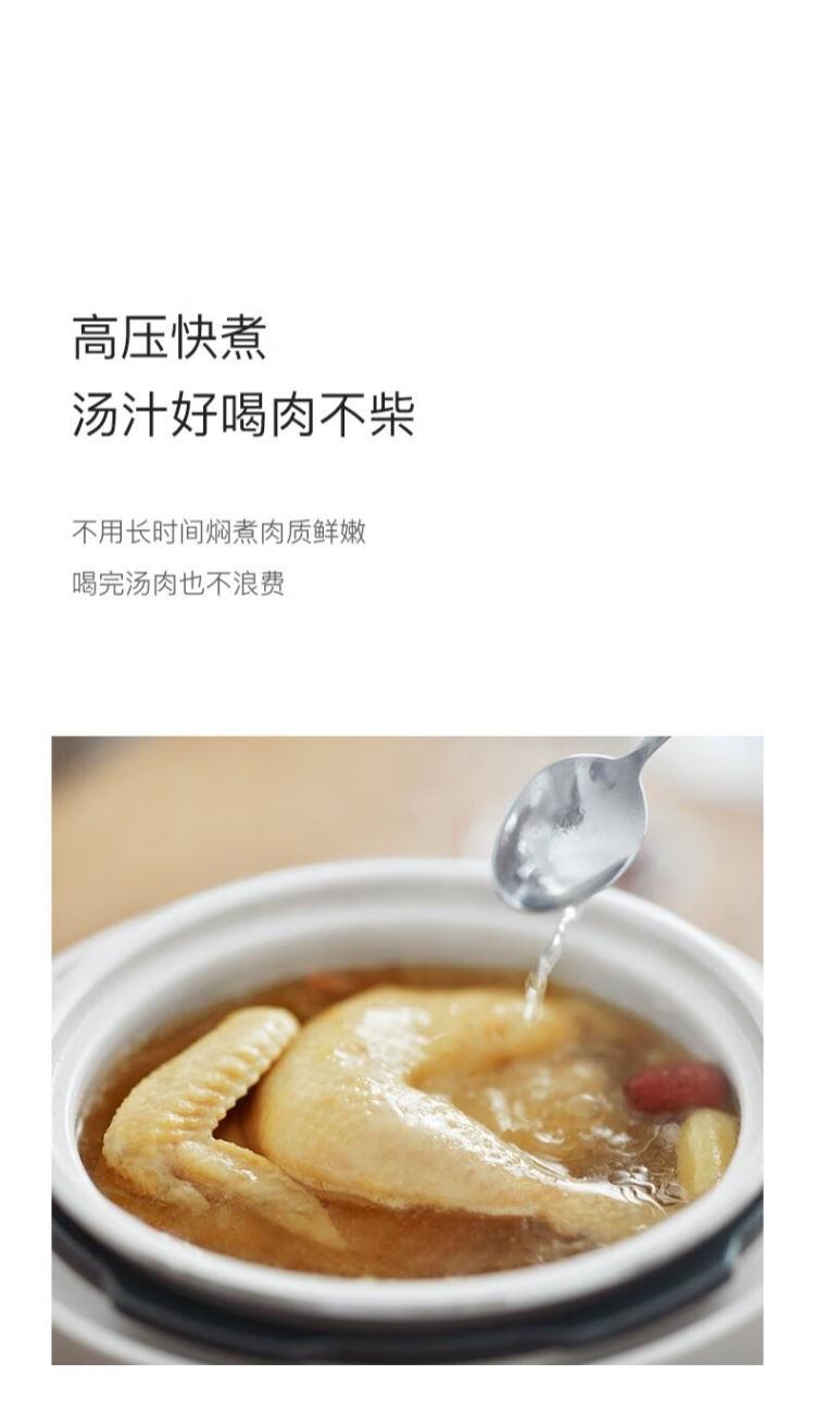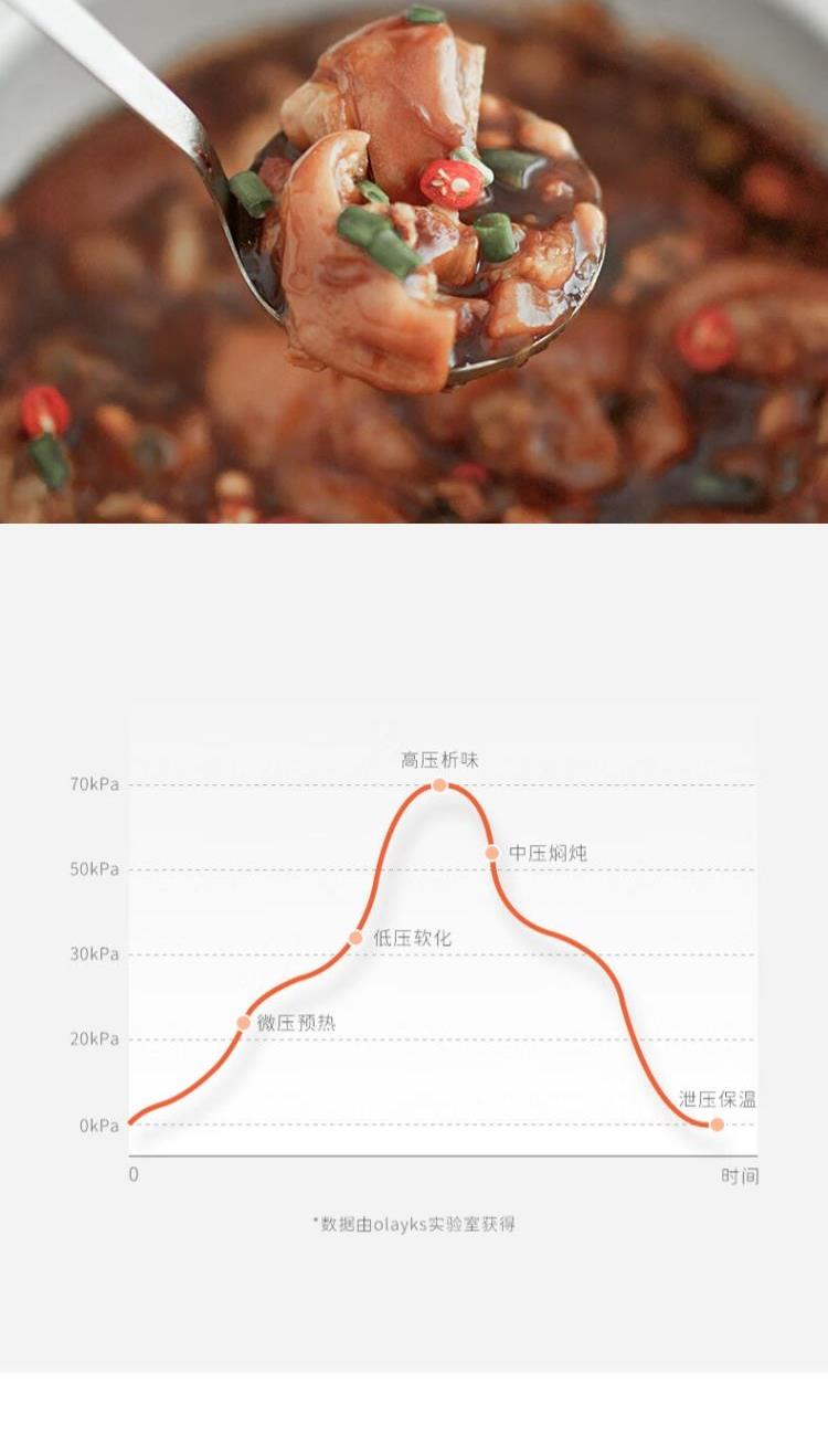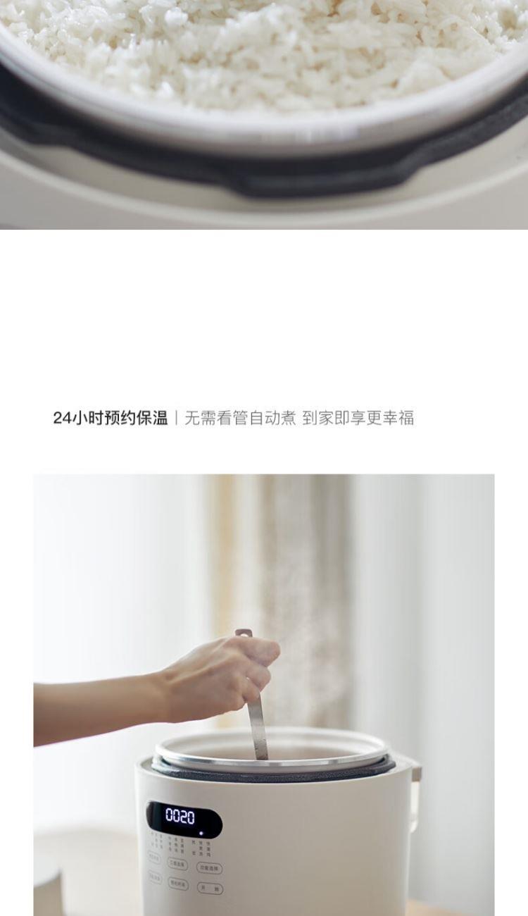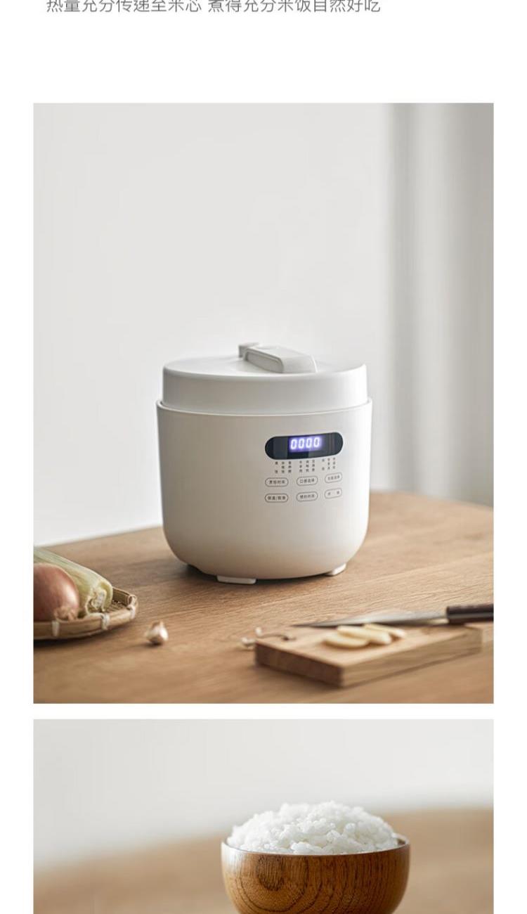 电压力锅: 颜色:陶白 容 量:5L 重量:4.58/6.55kg 额定功率:900W 产品尺寸:294*280*292mm 包装尺寸:340*322*490mm 8H原标陶瓷釉圆釜内胆,不粘锅好清洗 70Kpa高压快煮,软嫩脱骨 24小时预约保温,泄压防堵保护 可调节保压时间,自定义三种口感 上下NTC双感温探头,煮粥煲汤不溢锅