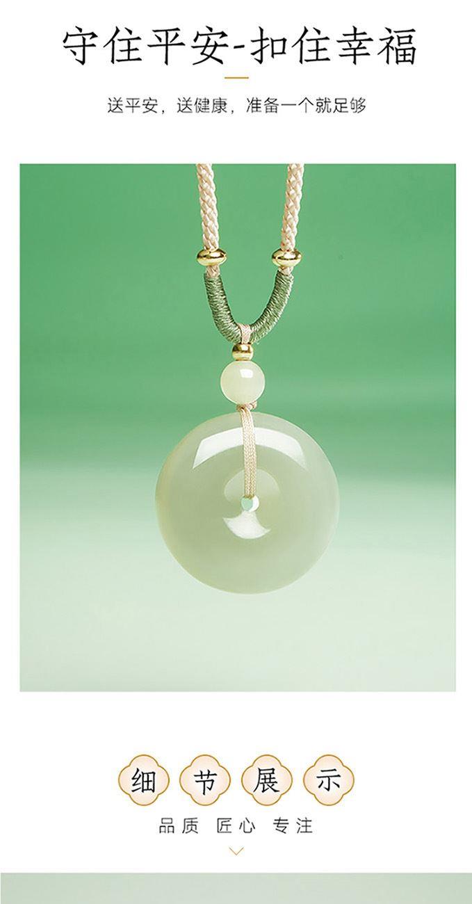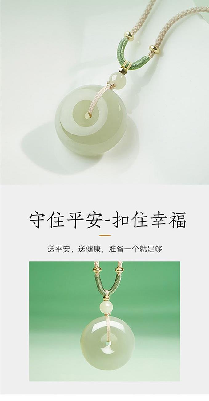 温润仁德: 君子比德于玉。玉的温润、内敛、不张扬的光泽,象征着仁爱、宽容、温良的品德和有修养的君子之风。 清新与生机: 它的底色清透、水润,泛着淡淡的蓝绿色调,仿佛一汪清澈的湖水或晴朗的天空。这象征着清新、淡雅、生机勃勃,能给人带来舒畅、愉悦的心情。 平安顺遂: 顾名思义,核心的寓意就是保佑平安,扣住安康,将一切不好的事情都“扣”在外面。