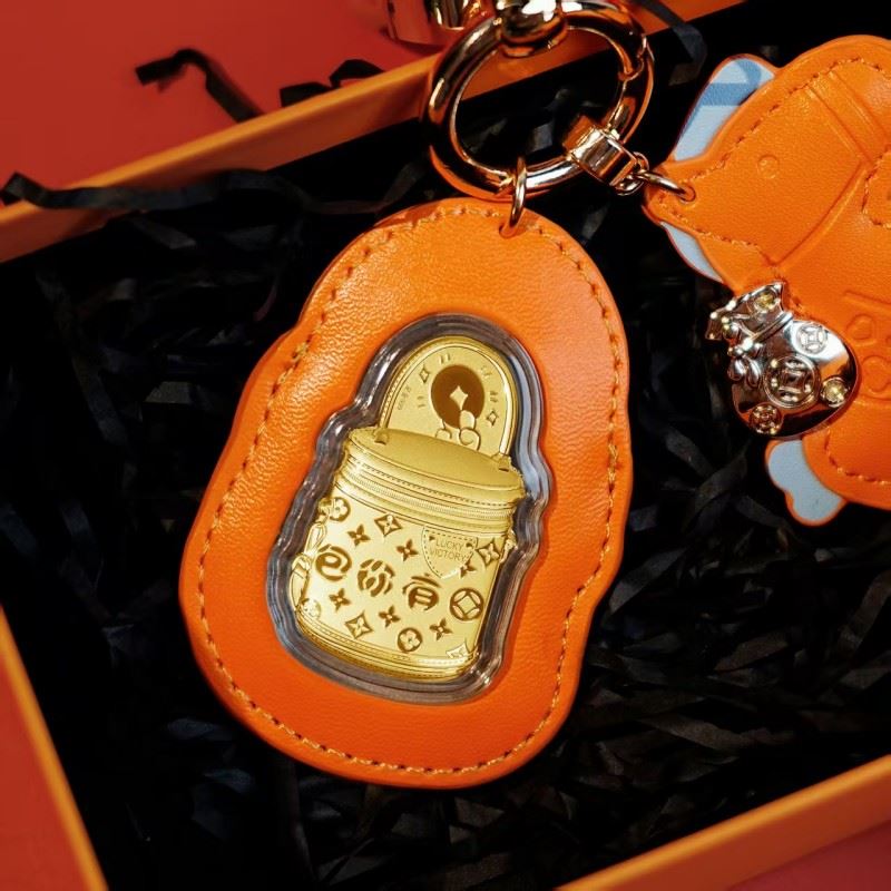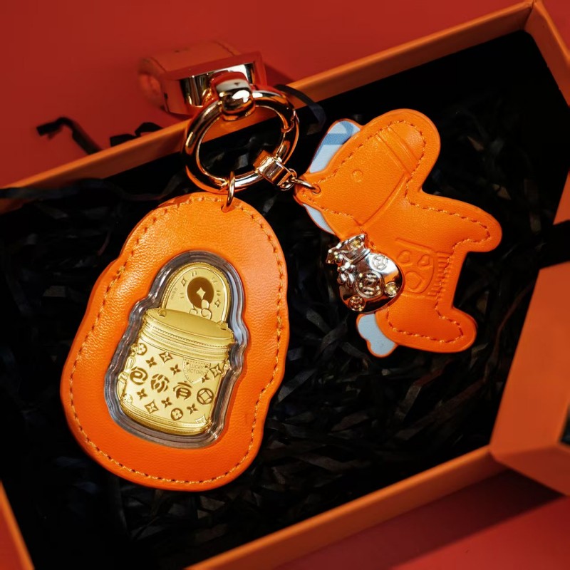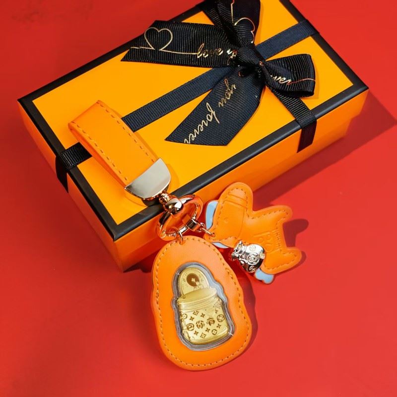 产品配置: 1黄金包包挂件.x1个 2.质检证书x1张 3.精美包装x1个 4.手提袋x1 5.贵金属规格:足金 10mg 包装规格:120*80*50mm 橙运当头黄金钥匙扣 + 灵动小马挂件 足金999 材质+ 「包治百病」吉祥彩头 爱要“扣”住不放!送TA这款「黄金包包钥匙扣」 足金福牌+萌趣小马,寓意“包”你幸福、“马”上脱单! 送男生/女生都不会出错的黄金钥匙扣 ✅ 招财 ✅ 脱单 ✅ 保平安 一“扣”三得