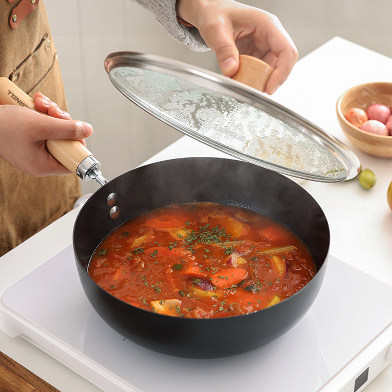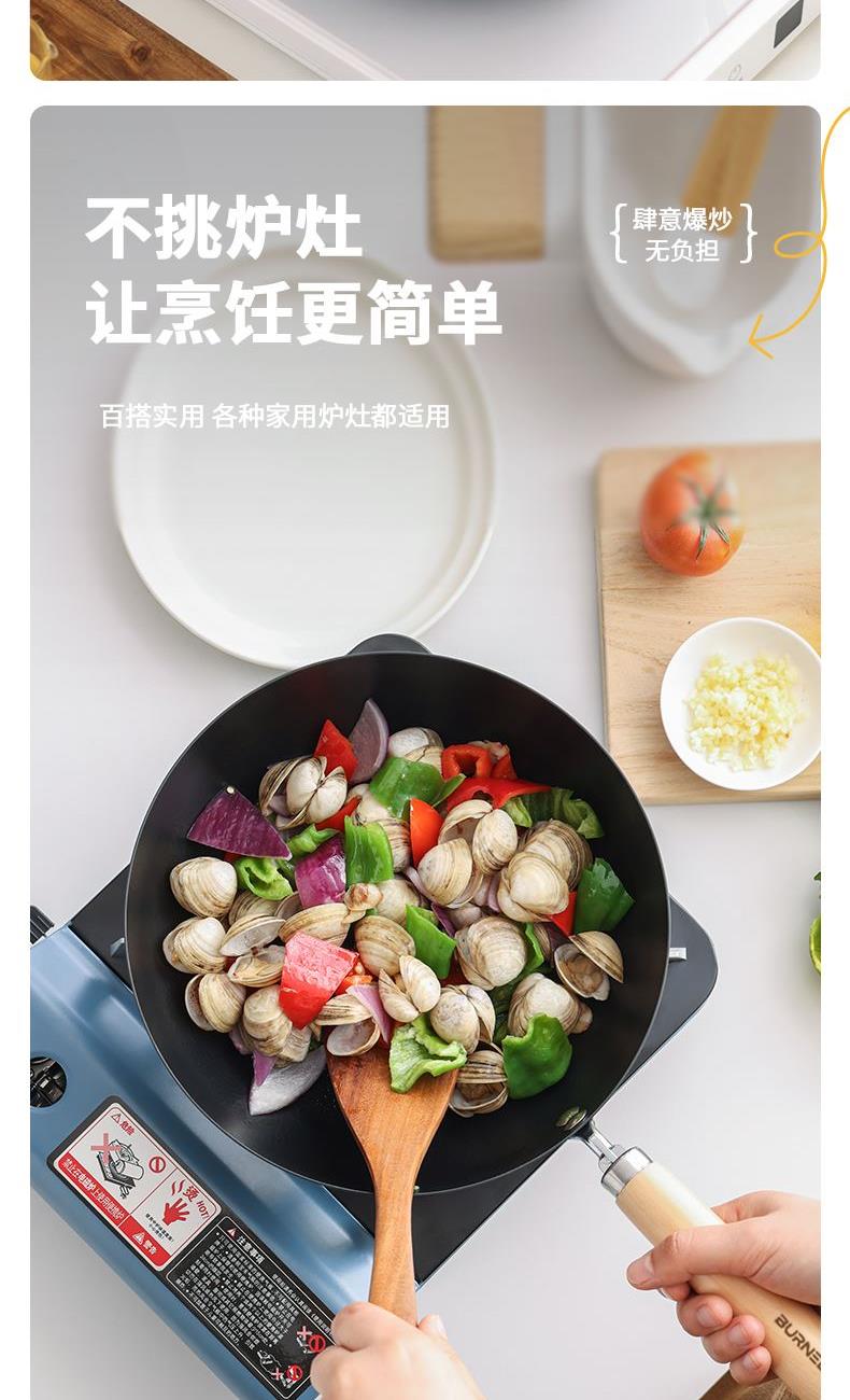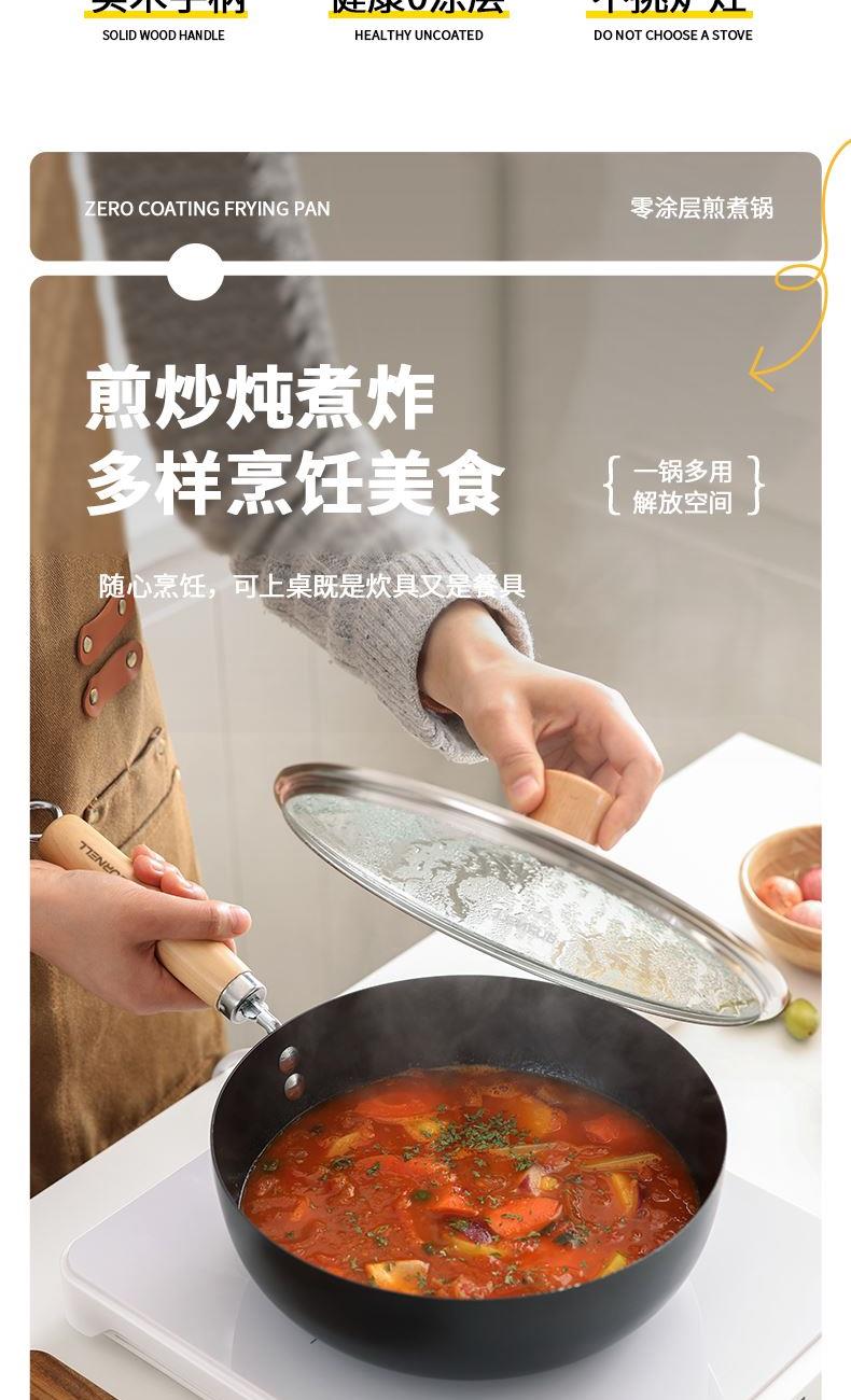 规 格:24CM 锅 材 质:优质铁基材 装 箱 数:10pcs/箱 两重防锈工艺,深层氮化,形成致密防锈层,锅体表面充分反应,硬度提高,耐磨性强。 煎炒炖煮炸,多样烹饪美食,随心烹饪,可上桌既是炊具又是餐具。 导热快速均匀,健康无涂层,肆意爆炒无负担。 实木手柄,握感舒适,铆钉工艺结构,坚固耐用。