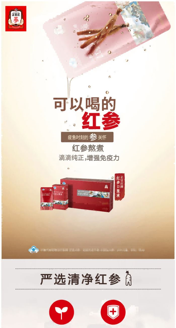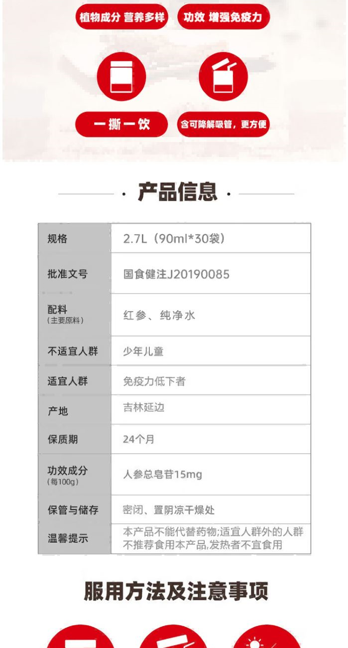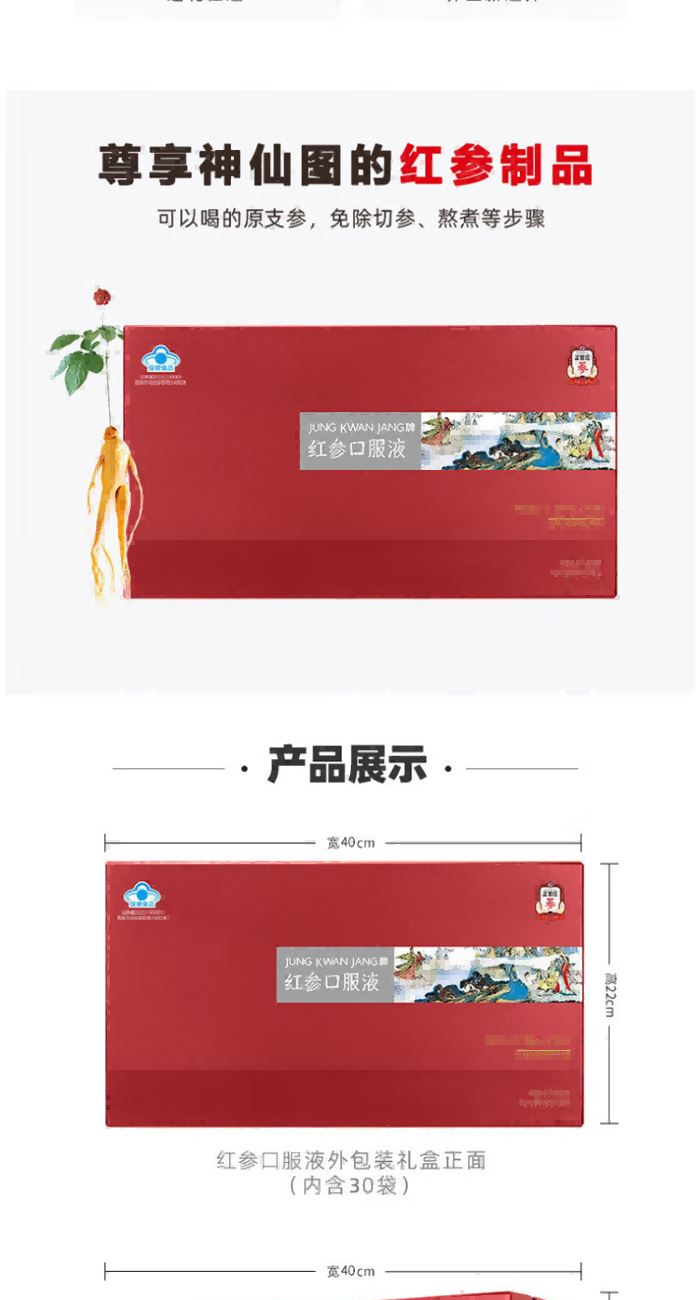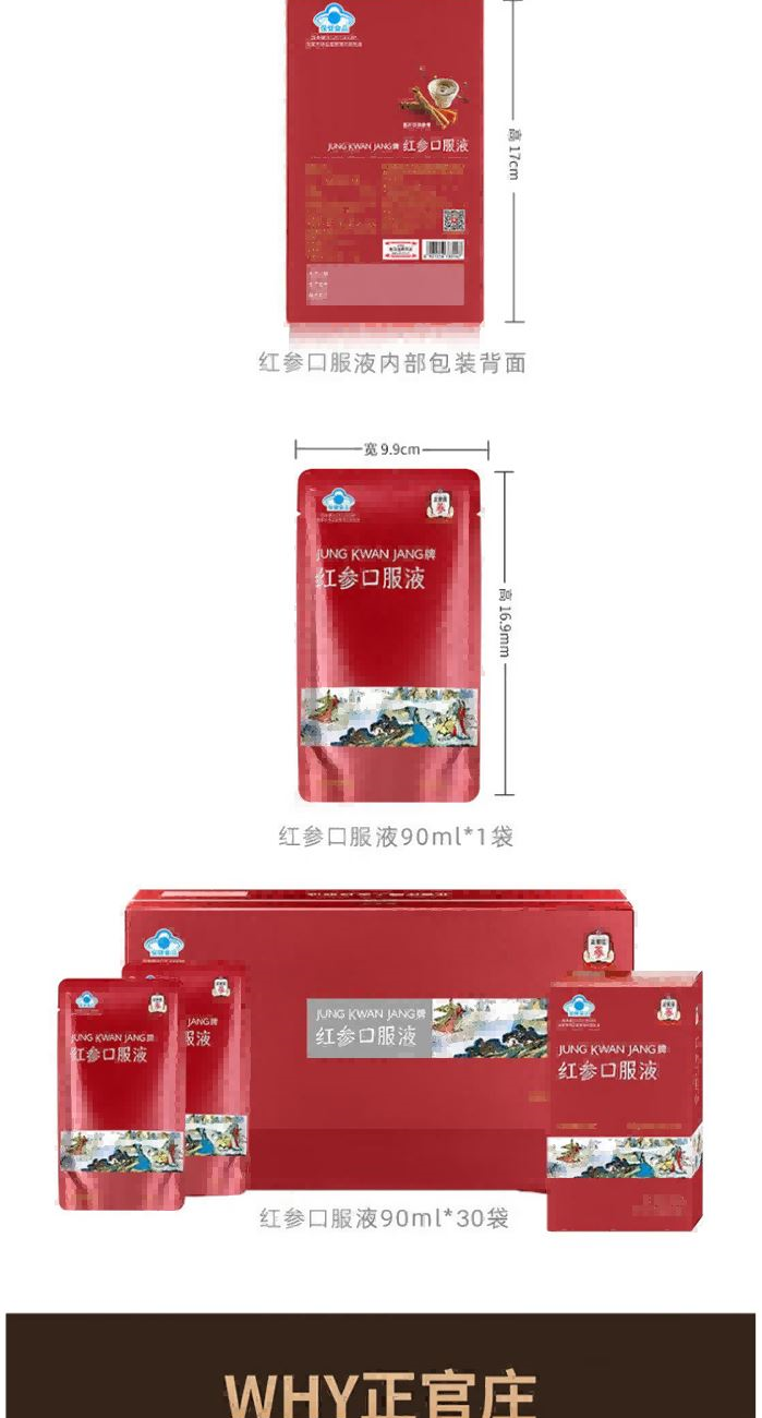 正官庄人参红参口服液90ml*30包健康滋补礼品