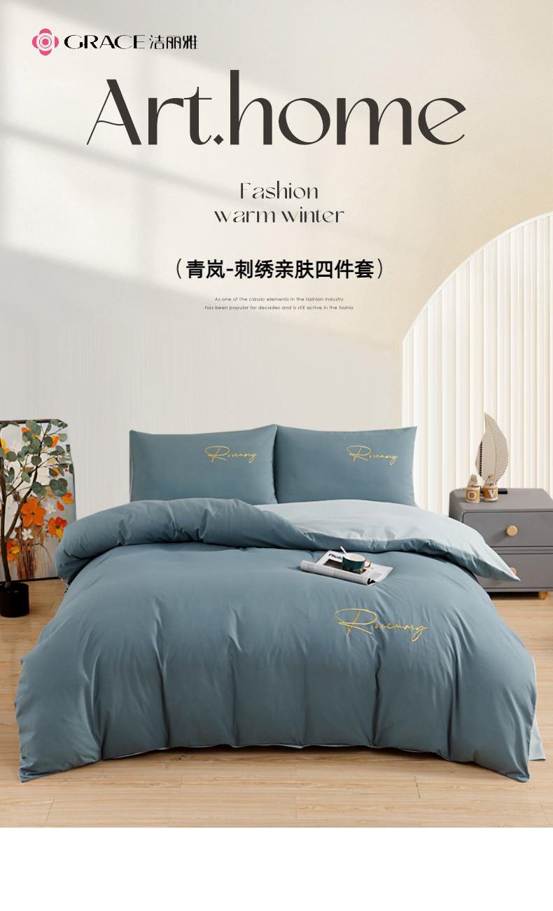 洁丽雅(Grace)青岚.刺绣亲肤四件套