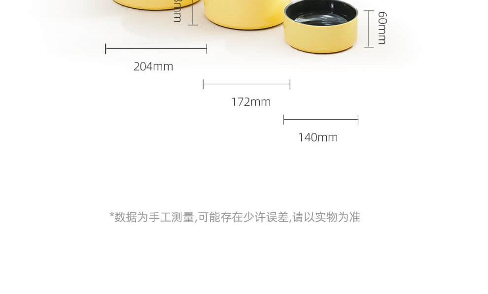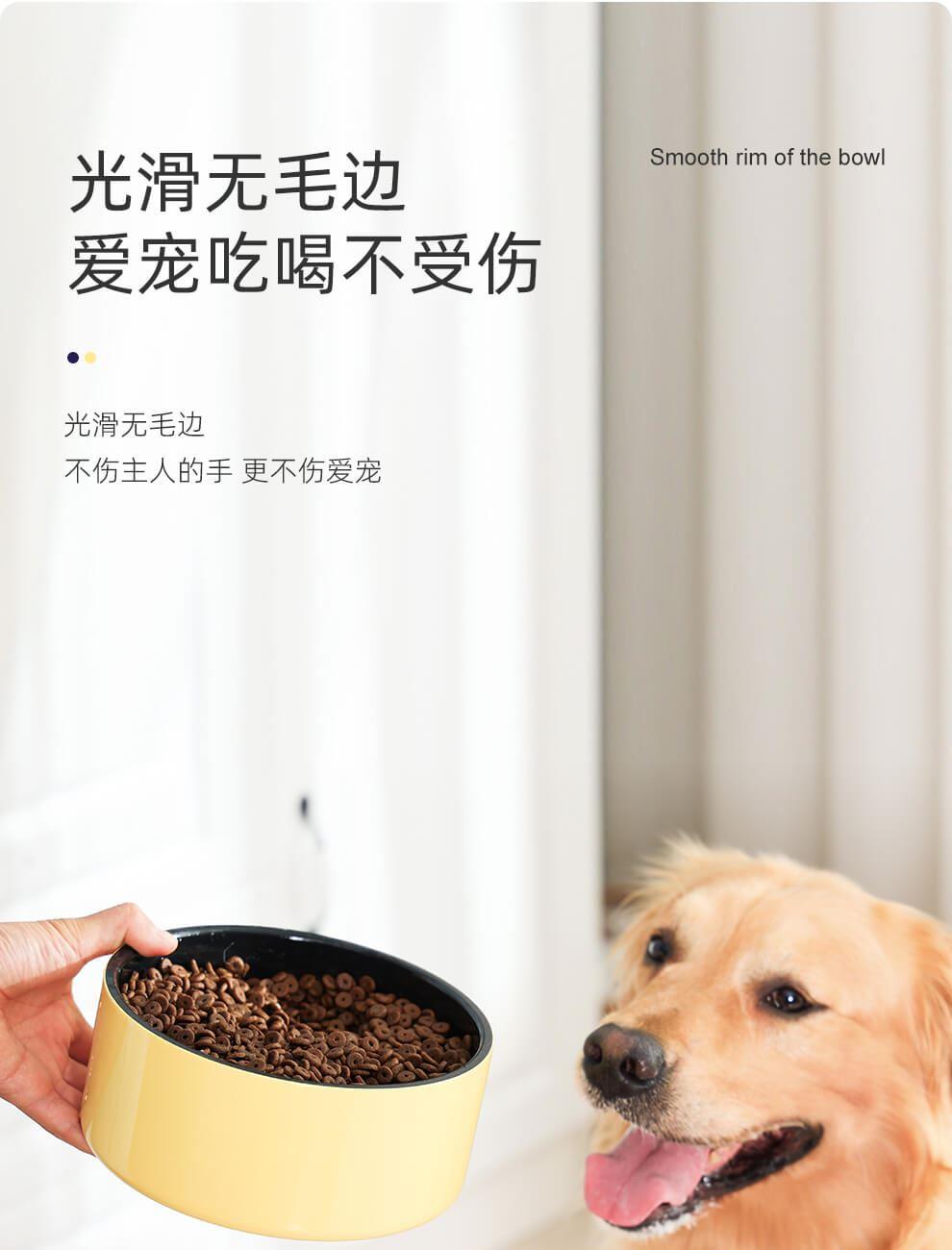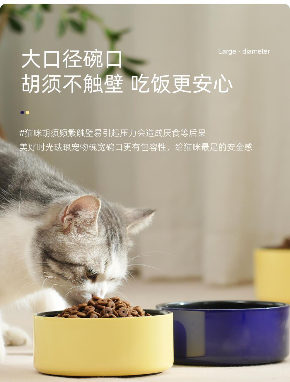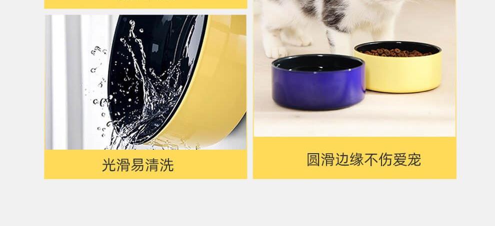 产品尺寸:口径13cm 产品容量:500ML 产品颜色:黄色、蓝色 产品材质:铁素体型不锈钢10Cr17、珐琅、硅橡胶 1、进口珐琅瓷避免黑下巴,耐刮擦油脂细菌无处藏匿; 2、加深加宽满足大饭量,大口径碗口,胡须不触壁 ,进食更轻松碗底加宽 & 硅胶防滑条设计,稳固不移防打翻 ; 3、光滑无毛边,爱宠吃喝不受伤,光滑釉面一冲即净。