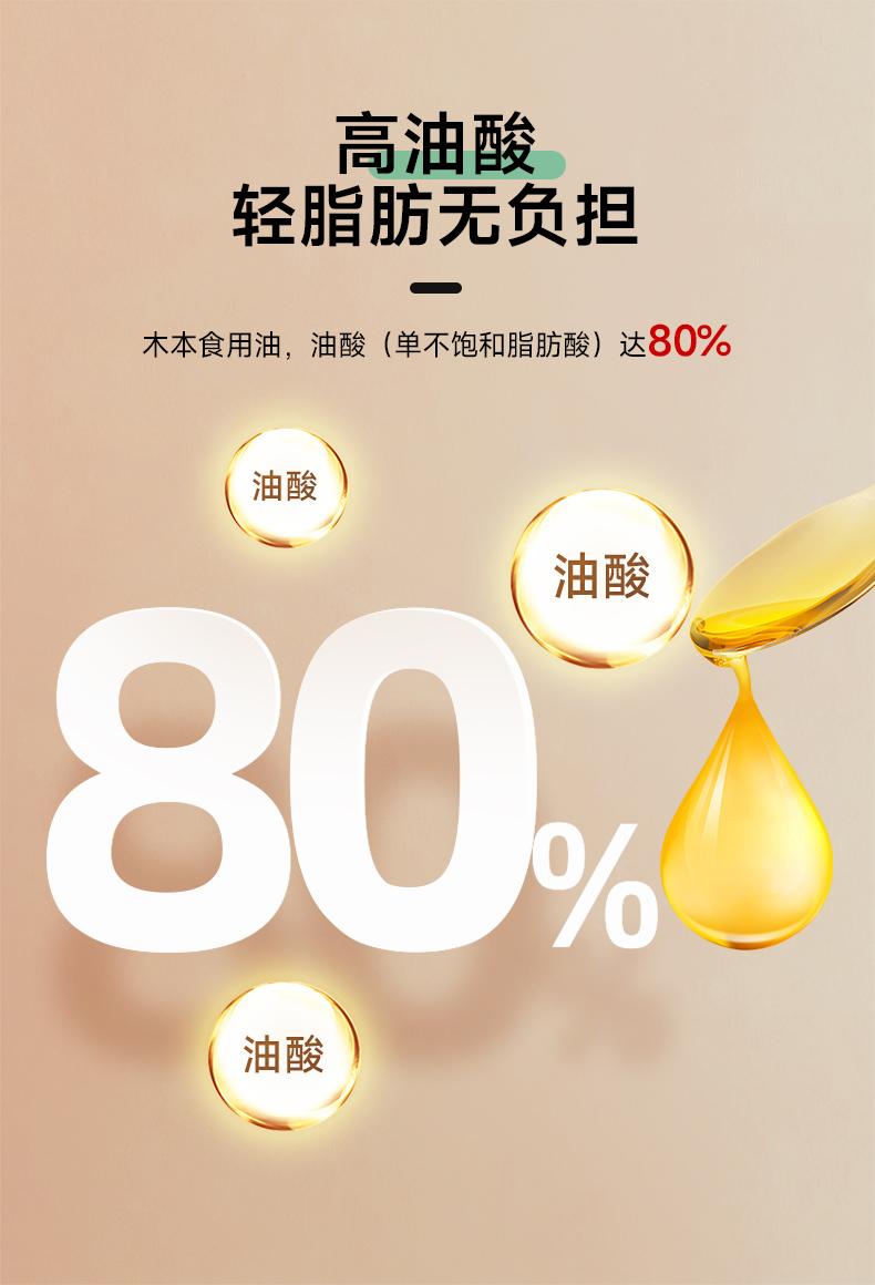 压榨冷提 1、浓香纯正,风味浓郁,不止是土榨坊的味道 自创风味浓郁的浓香山茶油增香技术,将茶油中特有的芳香气味封存在茶油里。 2、230 ℃高烟点 热锅下油味更浓 230°的高烟点,符合中国人的烹饪习惯,高温烹饪更能激发浓香茶油香味,且炒菜少有油烟,减少油烟危害。 3、荤菜好搭档 入味不腻 茶油分子小,渗透力强,能够激发食材原有风味,而且清爽不油腻,尤其适合做荤菜。