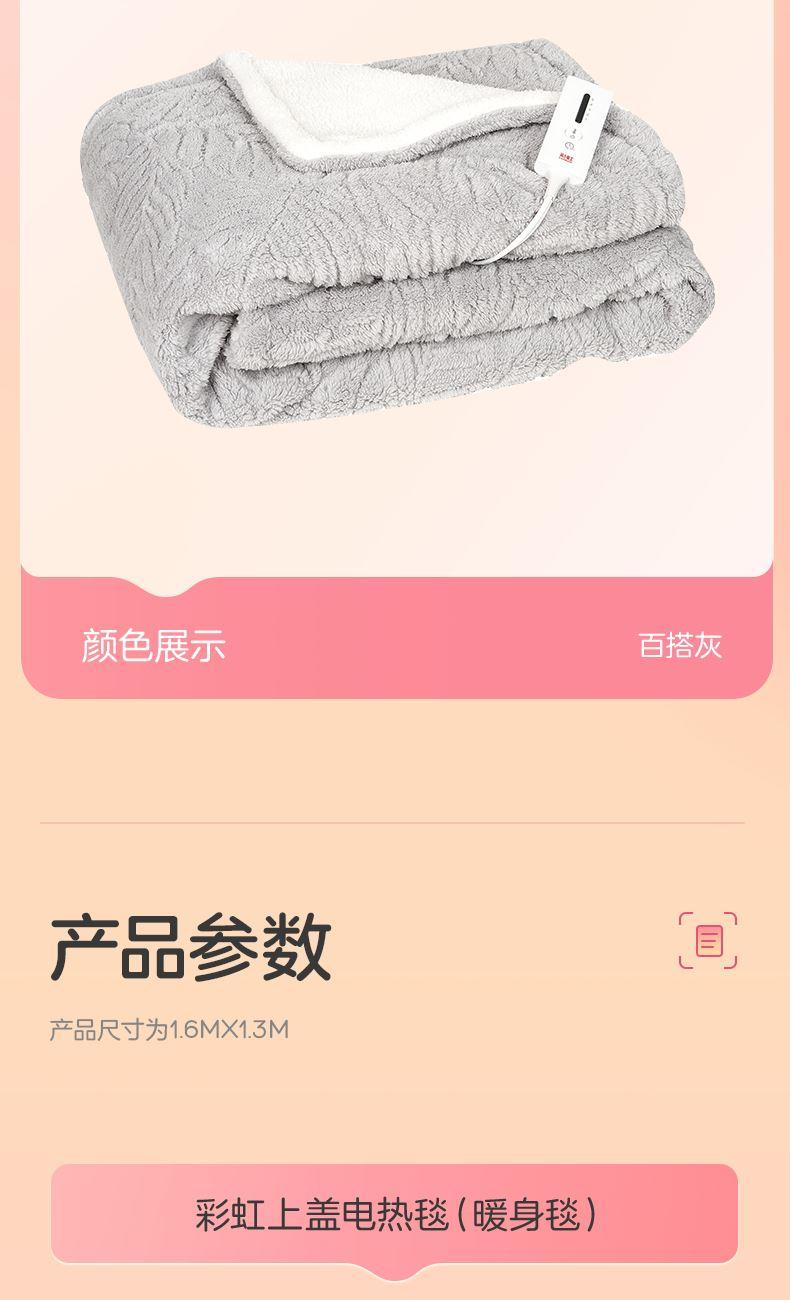 彩虹1613冬季午休上盖电热毯1.6*1.3米