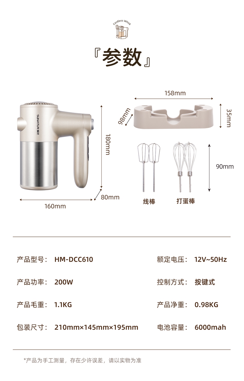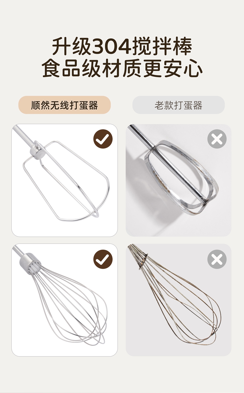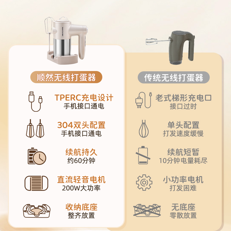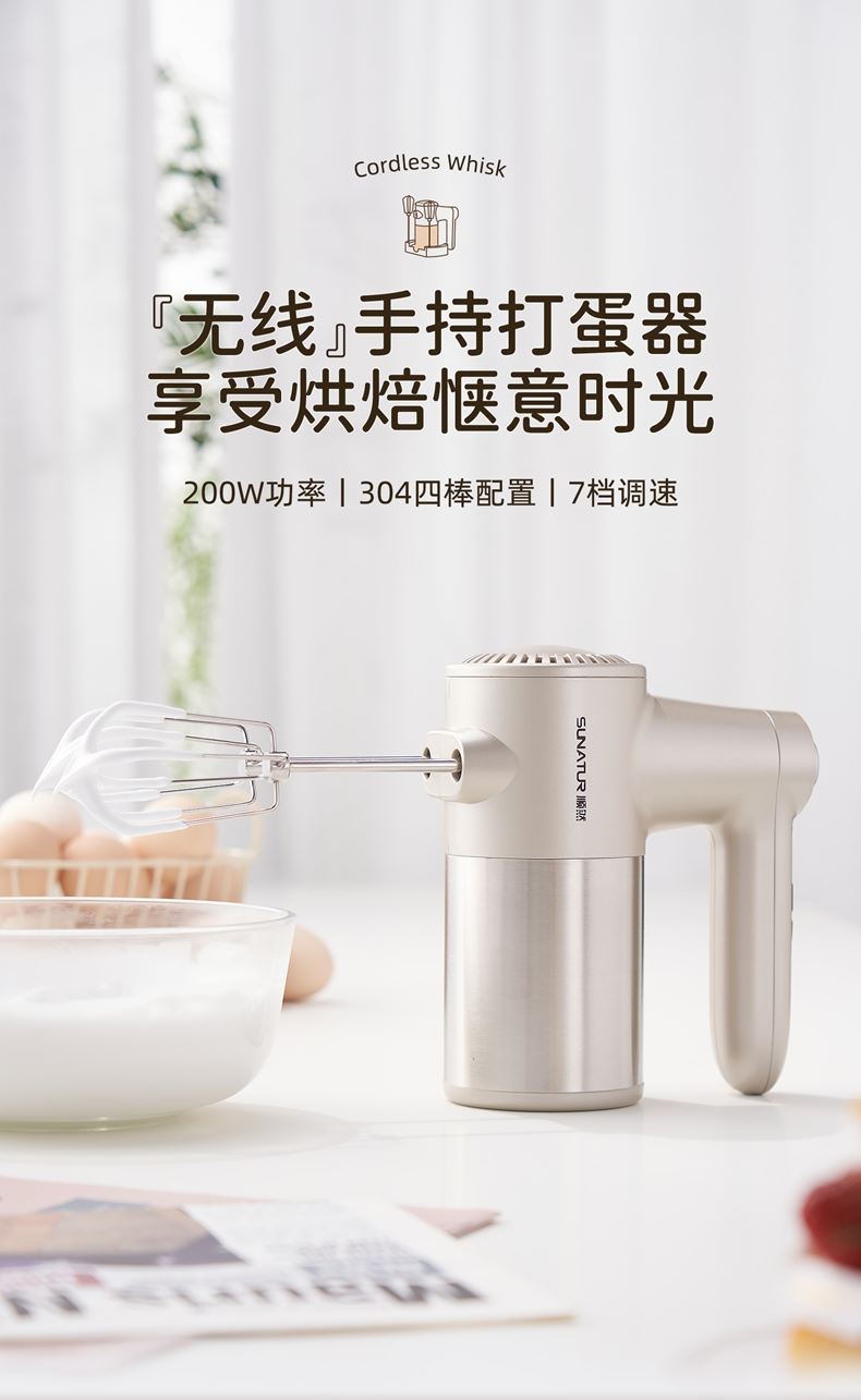 顺然SUNATUR直流快充无线打蛋器四棒款HM-DCC610