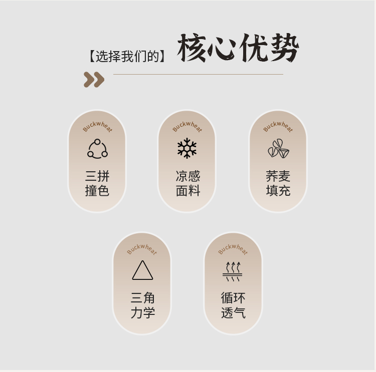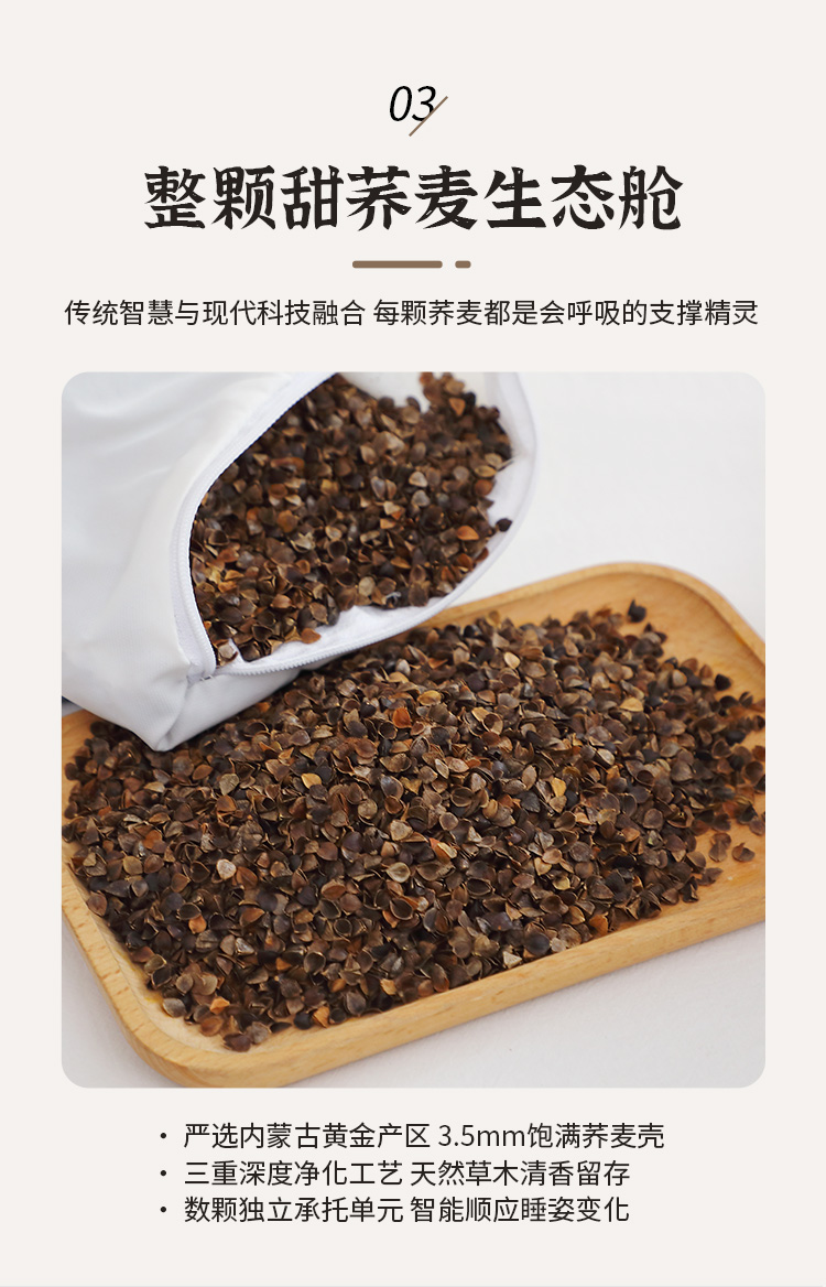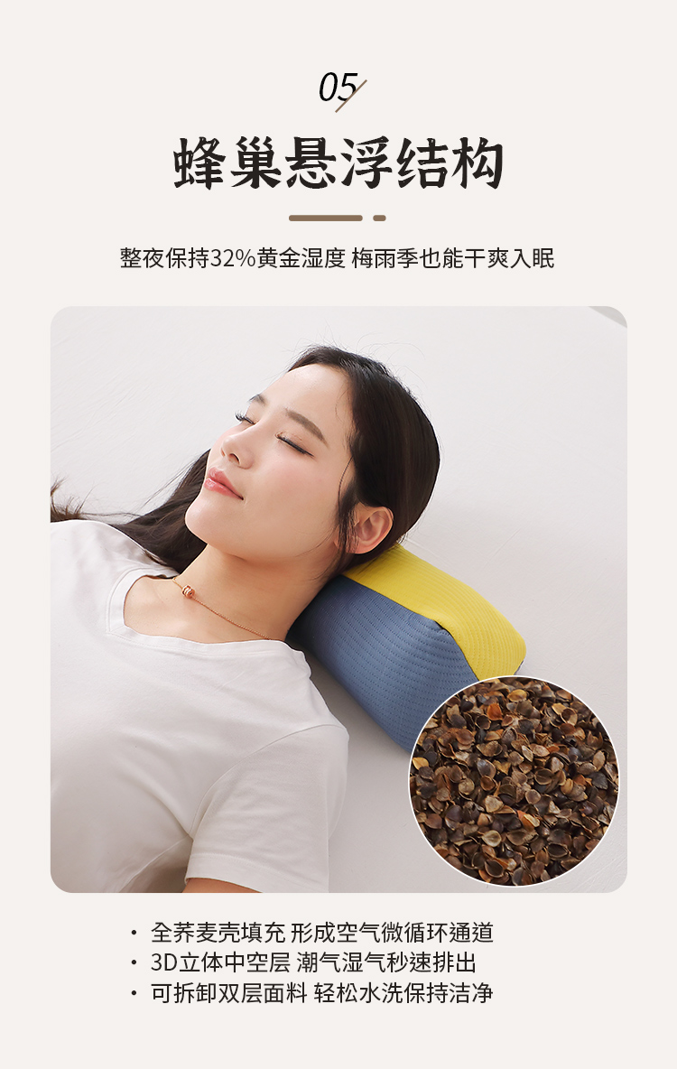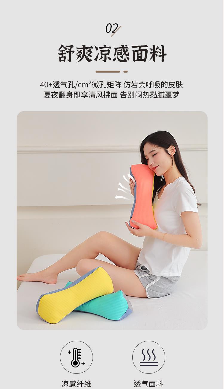 品 名: “颈”上添花荞麦护理枕 型 号: HS-Z-QM25201 面 料: 凉感纤维(聚酯纤维) 填 充: 甜荞壳 500克 规 格: 15*40cm 产品说明: “七节颈椎全打开,健康颈椎躺出来” 。 三 角立体造型科学贴合头颈曲线 ,搭配苦荞壳 自然空腔动态支撑 ,天然透气结构使颈椎保 持舒爽。 荞麦壳含有多种对人体有益的微量 元素 ,对身体大有益处。 枕面三色双拼 ,撞 色设计适配不同家居风格 ,轻便易携适配差 旅、办公午休等需求 ,传递贴心问候 ,是商 务赠礼、 员工福利及健康生活倡导的匠心之 选。