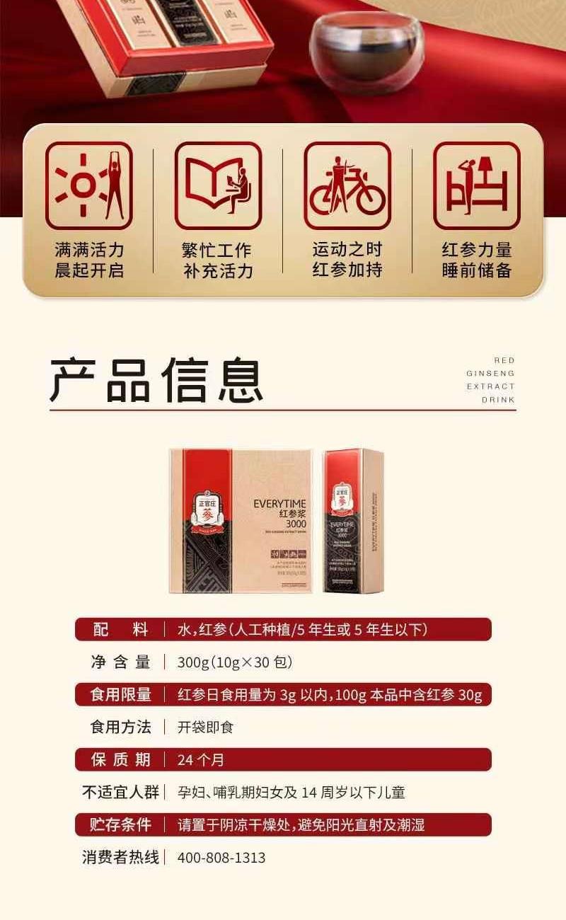 正官庄EVERYTIME人参浓缩红参浆10g*30包杨紫同款