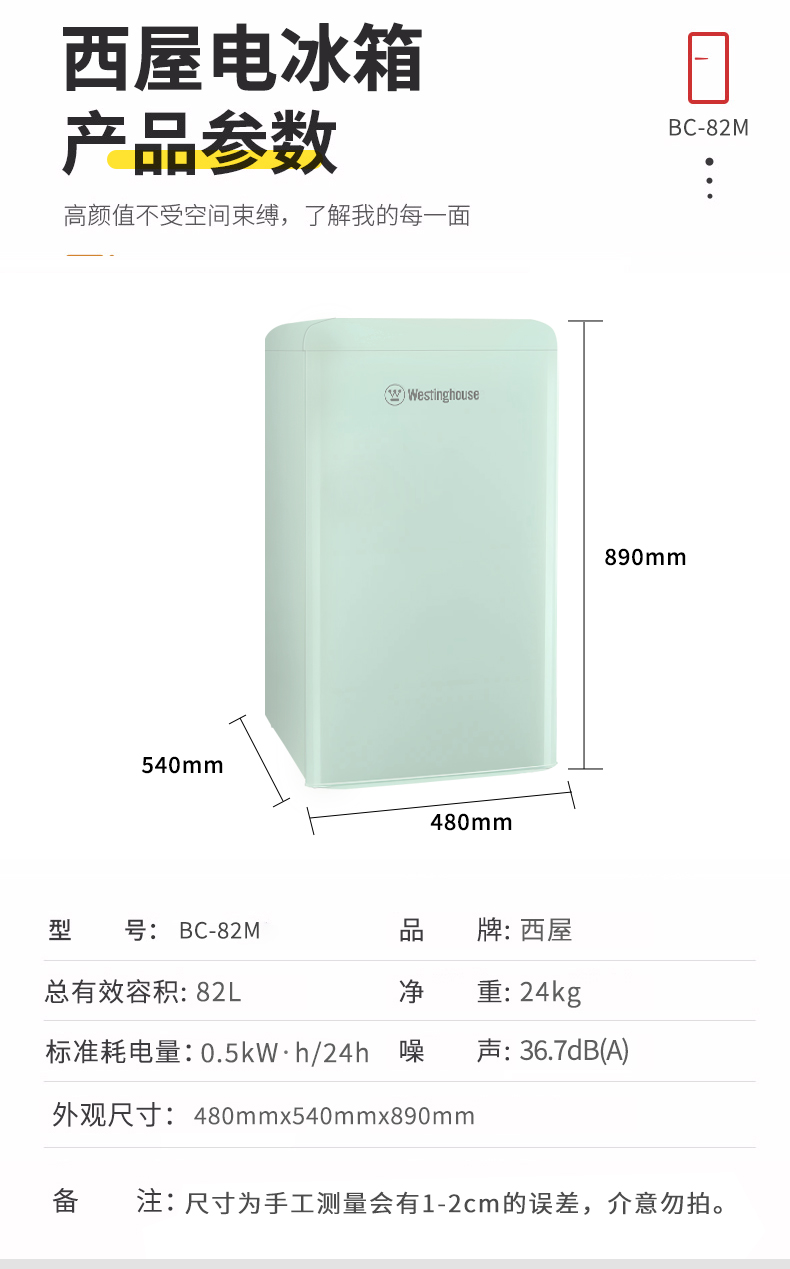 西屋冰箱BC-82M薄荷绿
