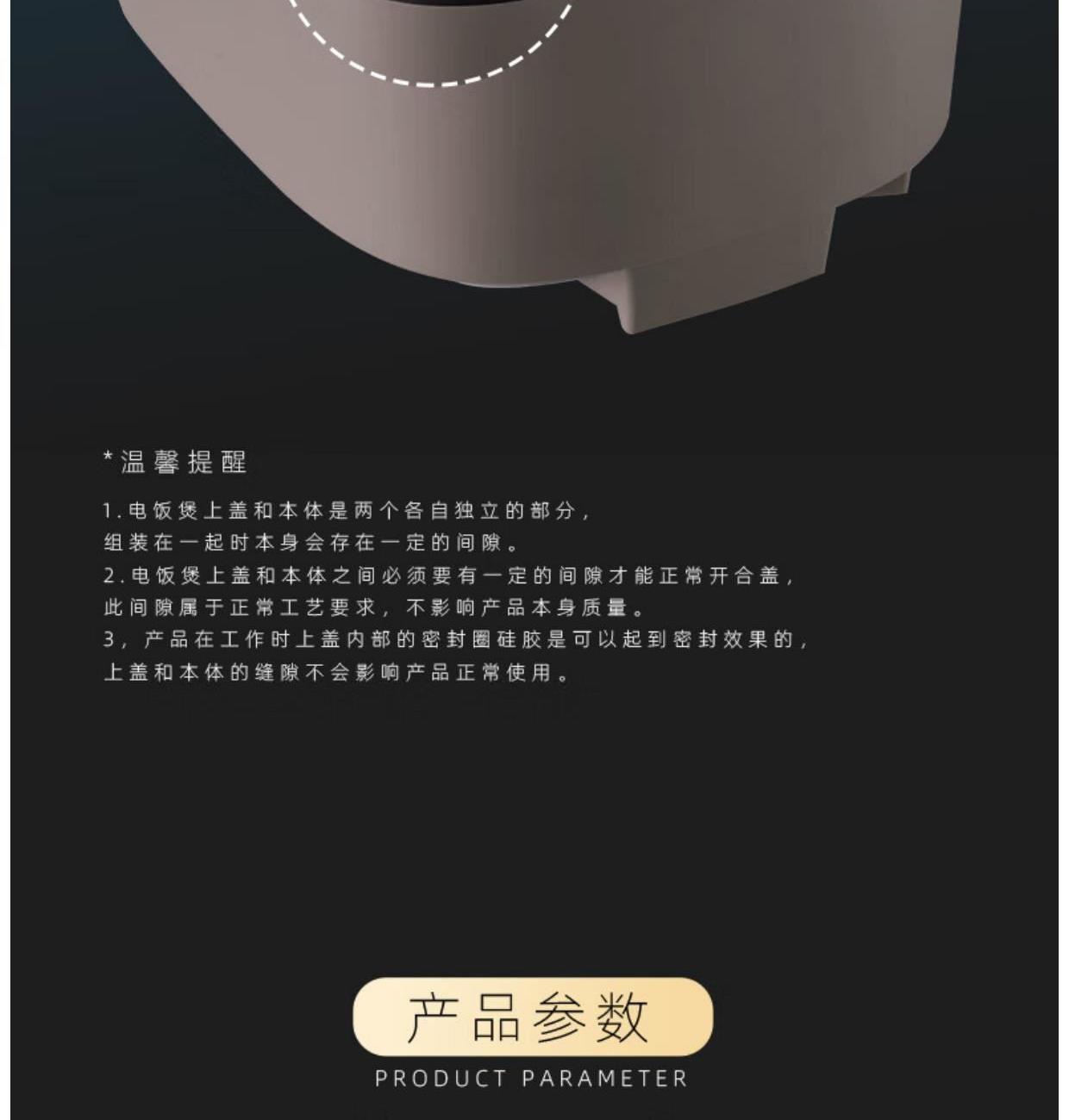 产品型号 :EHA- 4136A 额定电源 :220V~50Hz 能效等级:三级 额定功率 :1160W 额定容量 :3L 内胆重量:0.65kg 控制方式 :触摸 配件清单 :主机*1、内胆*1、量杯*1、饭勺*1、电线*1 环绕加热,上下立体加热; • 显隐式LED触摸面板智慧易操作,平整光洁,方便更贴心; • 快速导热锁热,烹煮效率高,热量穿透每一颗米; • 24小时智能预约,多种菜单选择,承包全家人美味大餐;
