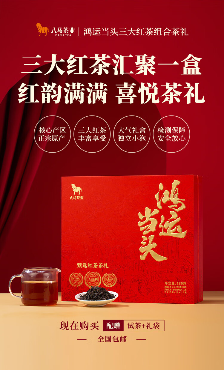 八马鸿运当头*红茶组合茶礼180g+单罐悦享装滇红200克