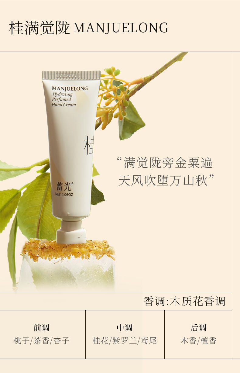 型号:护手霜系列 容量:30g 功效:滋润保湿,抗氧修护,香水级香氛护手霜 储存方法:阴凉干燥处保存