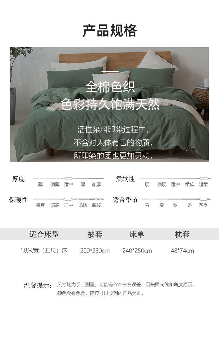 产品编码:JLY25701 产品规格:被套200*230cm 床单 240*250cm 枕套48*74cm*2 面料材质:棉(色织水洗) 净 重:2.9kg 礼盒 尺寸:420*320*95mm