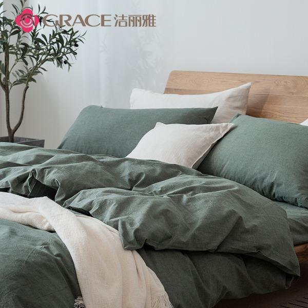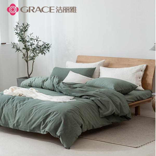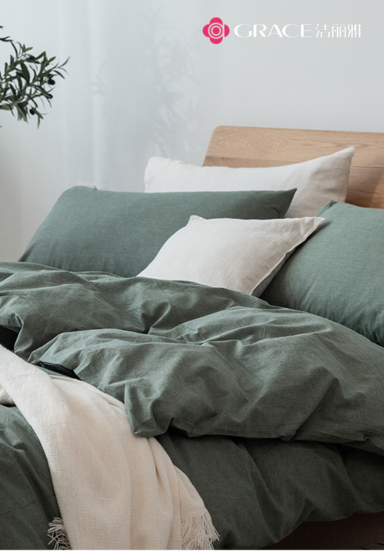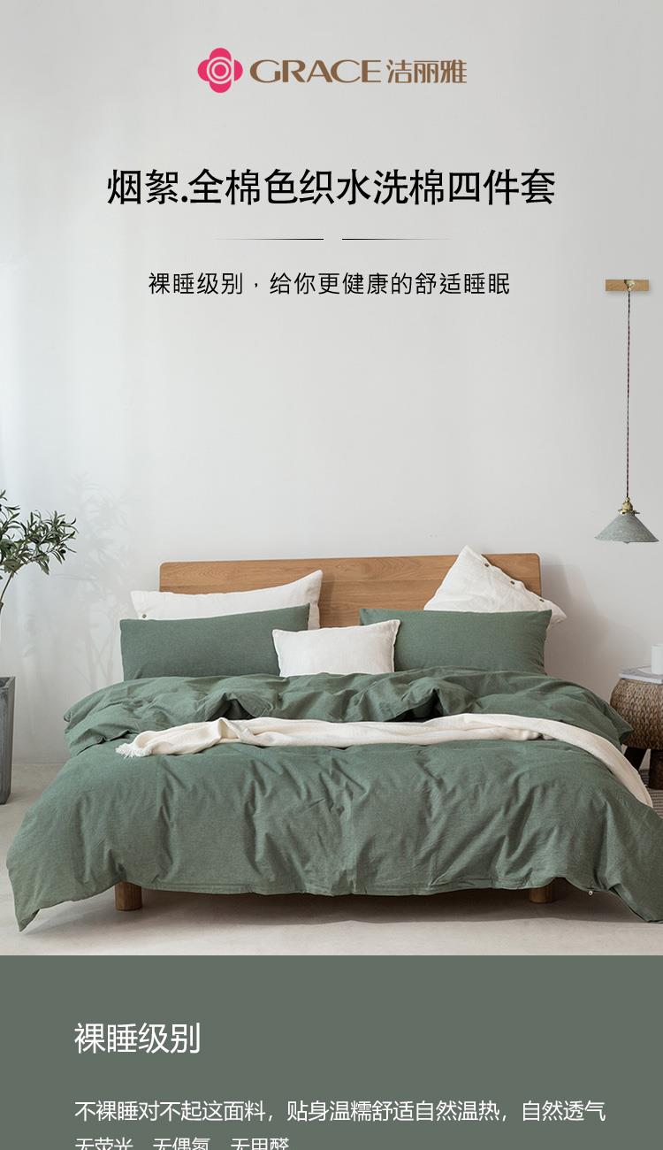 洁丽雅(Grace)官绿.全棉色织水洗棉四件套