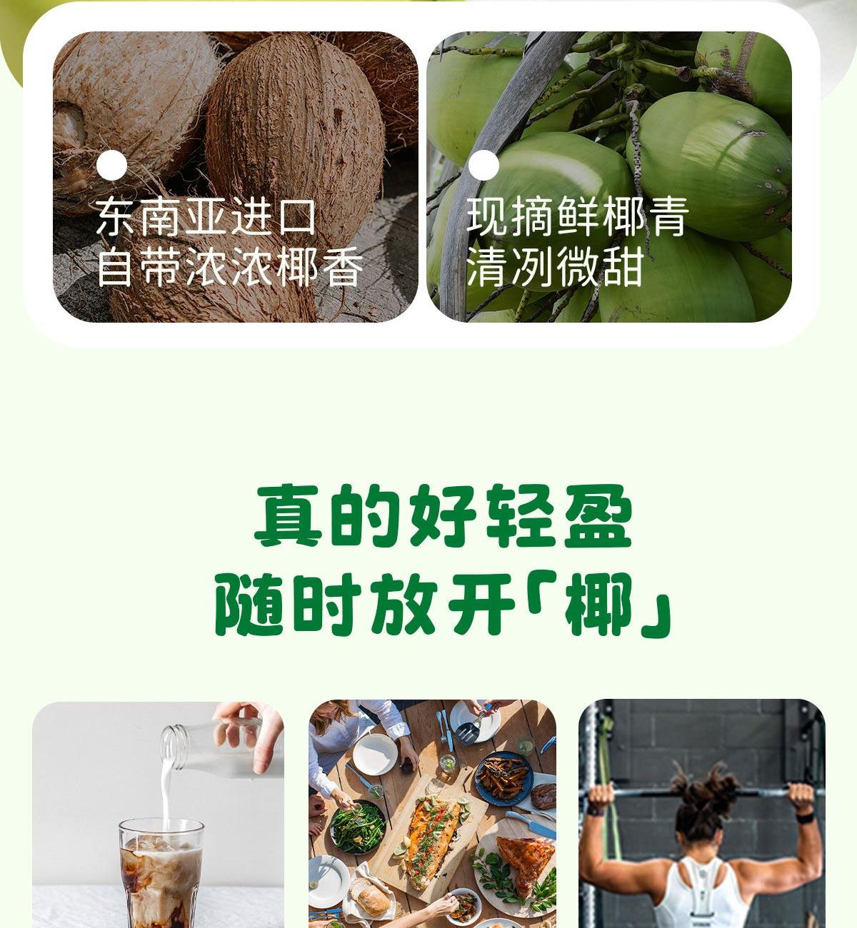 1、0白砂糖,1瓶热量<1颗苹果 2、椰肉汁:椰子水黄金配比,满分清爽 3、印尼进口香椰,还原鲜打椰味
