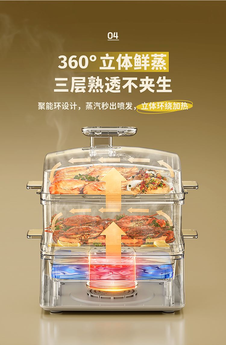 三层自由组合蒸笼,20大容量,使用实用又放心
