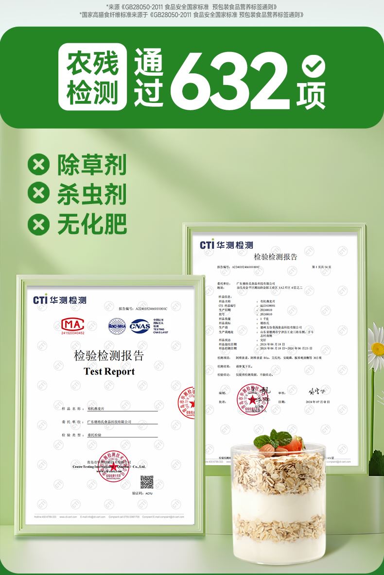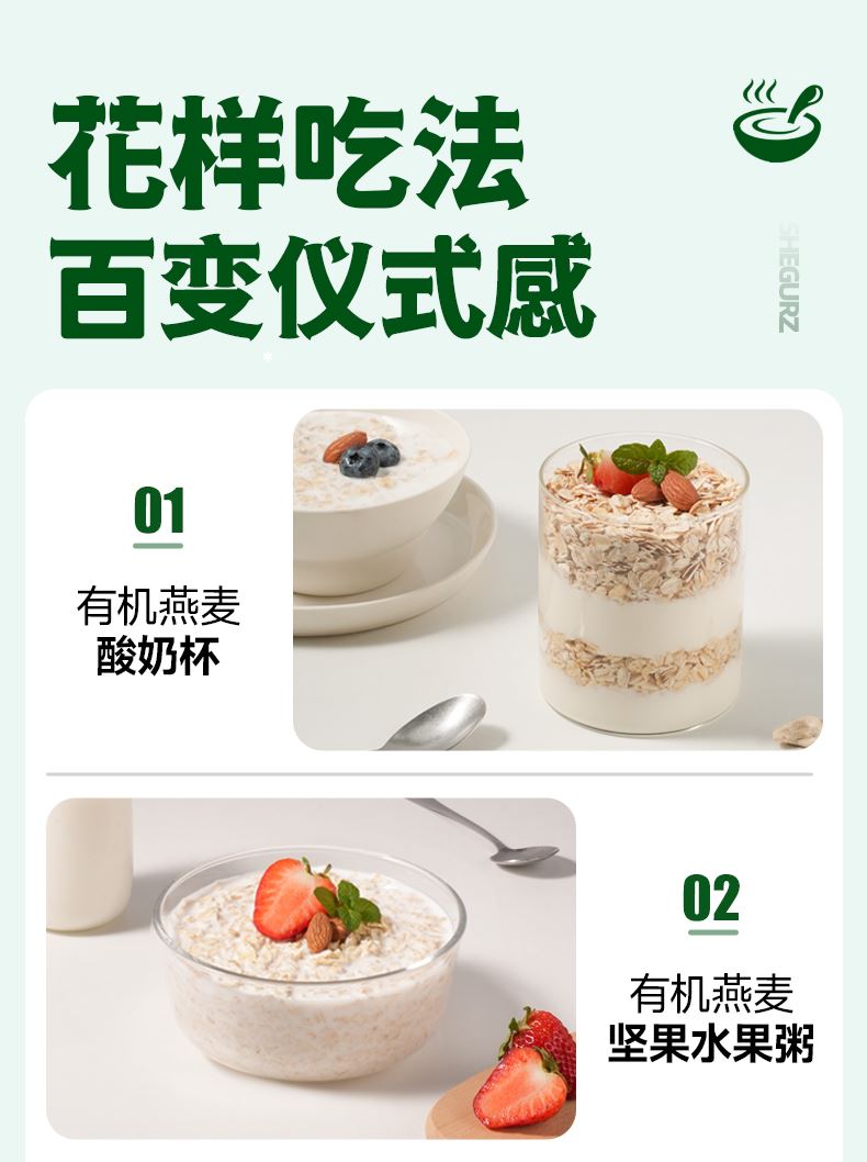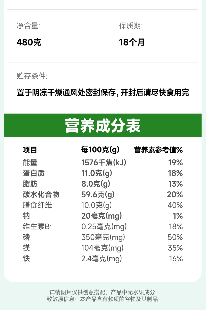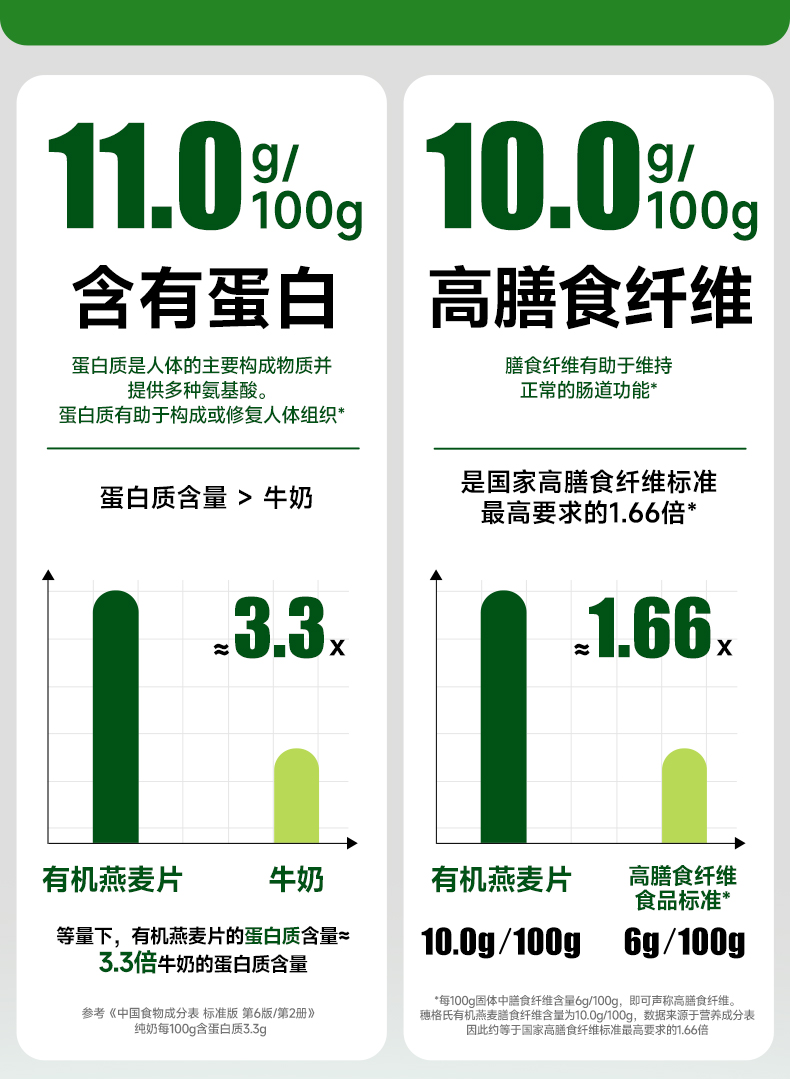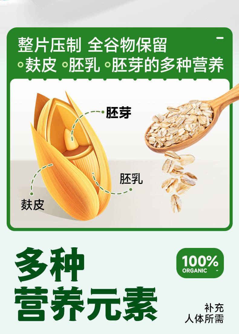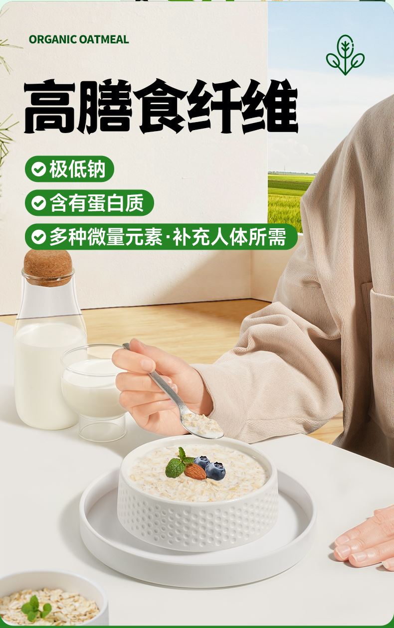 穗格氏有机燕麦礼盒480g(30g*16条) 配料表:有机燕麦片 产品卖点: 1,一罐一码 全程有机可追溯; 2,穗格氏专属有机种植基地,张家口市农业科学院育成品种“坝莜一号”; 3,高膳食纤维,含有蛋白质,无添加蔗糖,含维生素B1; 4,通过632项农残检测; 5,适合青少年,上班族,宝妈,中老年人的有机新生活。 6,小袋装,一顿一袋。