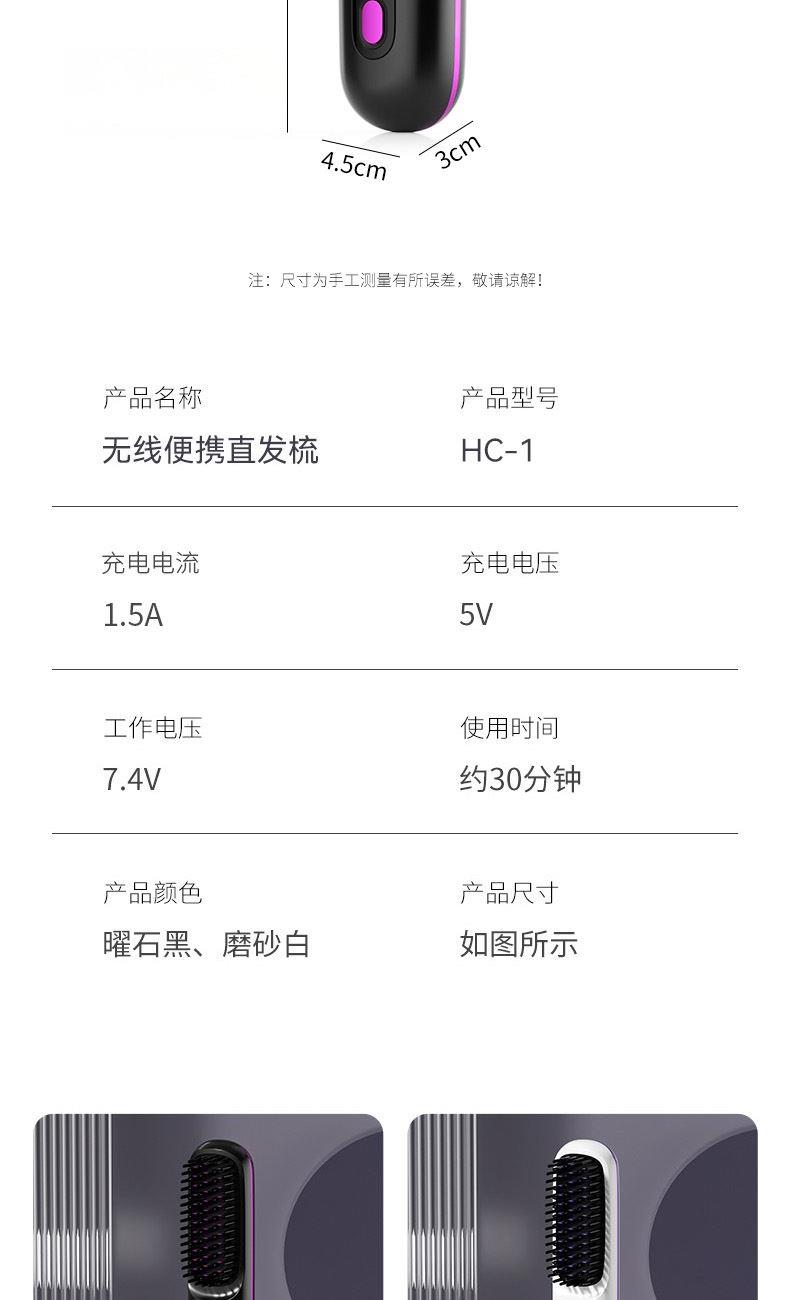 践程⽆线便携直发梳HC-1