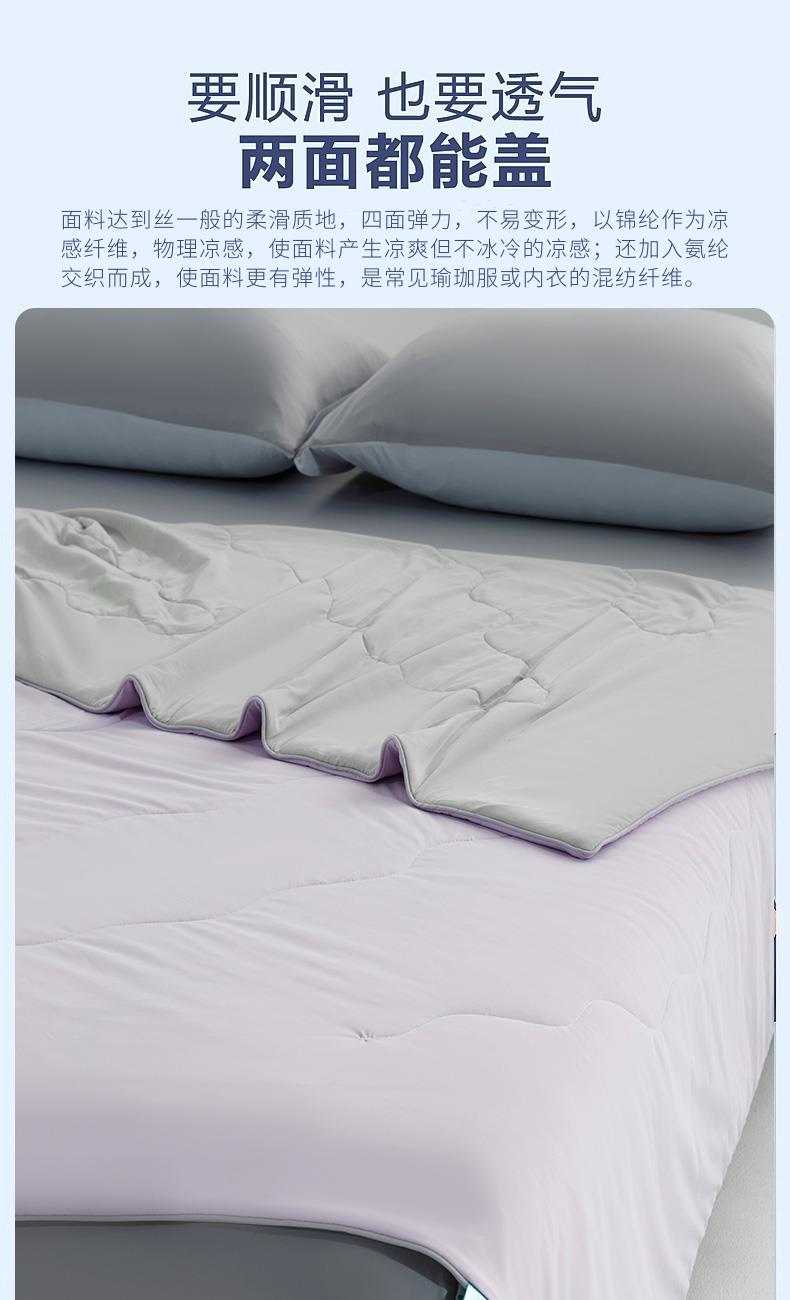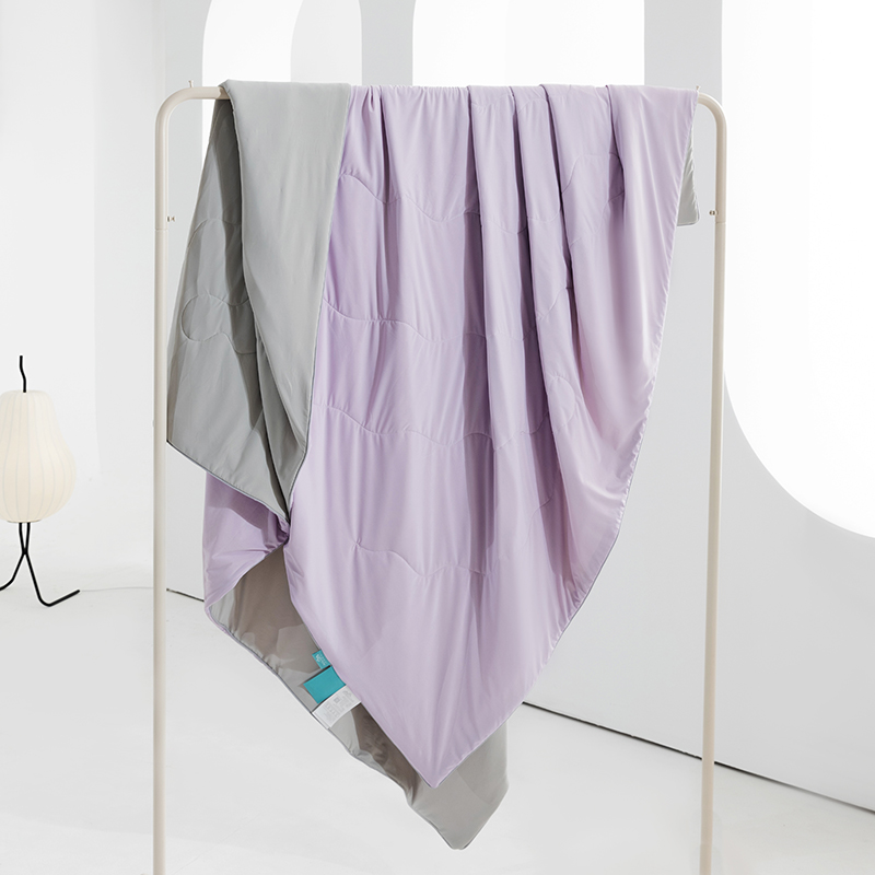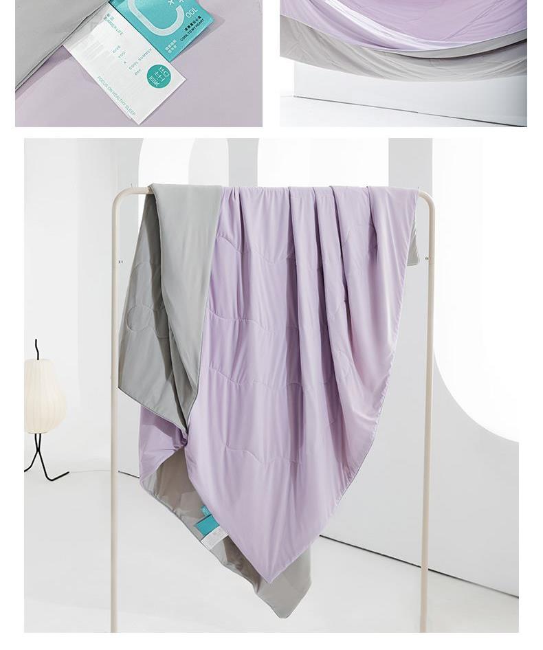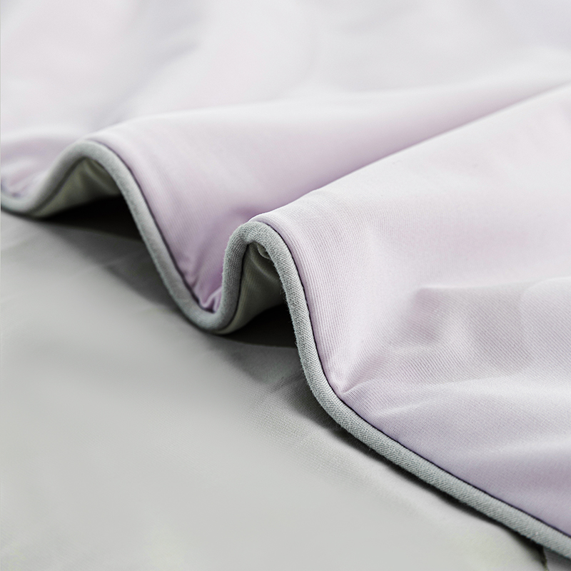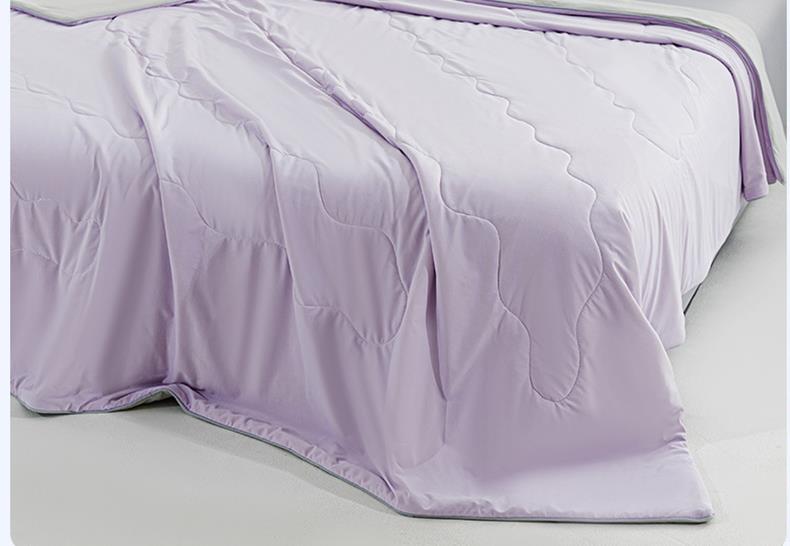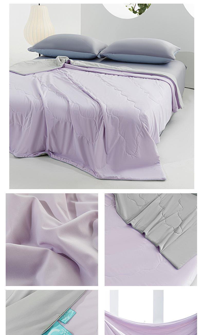 规 格:150*200cm 花 型:紫灰 面 料: 180克88%锦纶+12%氨纶凉感丝 填充物:聚酷纤维 工 艺: 定位绗缝 高定版即刻凉感黑科技,A类品质,一触即凉,躺下就凉快了Q-MAX值0.31刷新你对凉感的定义,瑜珈服般的质地非常柔软顺滑,适合所有人群,真正的科学配比聚酯纤维,优质填充 蓬松透气;时尚AB双面设计,活性印染色牢度高不易褪色,好洗易干,机洗手机均可,并经测试多次水洗 凉感值不变!波浪形绗缝,固定不结团 不移位。真正的西瓜凉,陪你度过炎炎夏日~