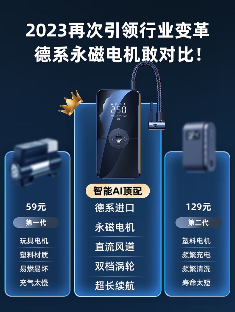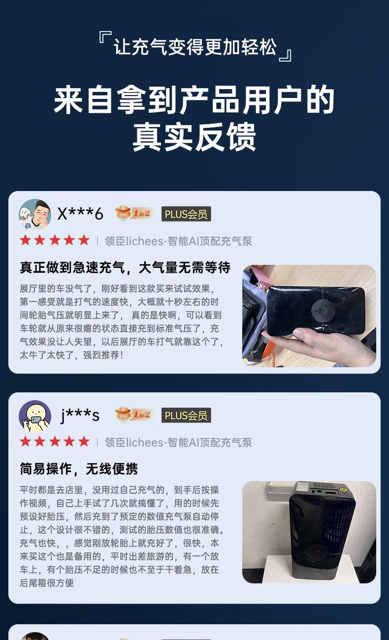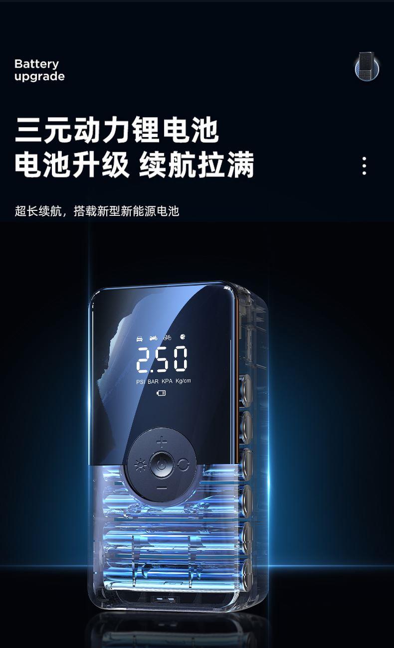 型号:LCCQB-02 产品颜色:黑色 类型:双供电顶配 材质:锌合金金属气缸 碳刷纯铜电机 充电时长:3-5小时 电池容量:1500mah*3 工作时长:15-30分钟 产品配件:球针*1 橡皮艇转换头*1 游泳圈转换头*1 英式法嘴*1 type-c充电线 充气软管 点烟器