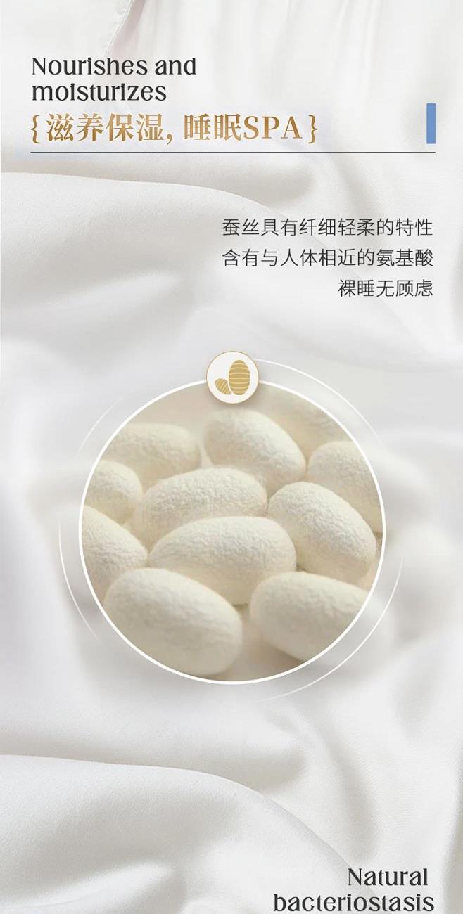规 格:200×230(±2)cm 克 重:2500g 面 料:苏杭御丝 填 充:蚕丝+木棉(1500g) 高密度苏杭御丝绸面料,紧实,有质感,有光泽。 填充蚕丝,蚕丝的十八种氨基酸,对人体无微不至的呵护。 高品质、高材质、高标准,一款对生活高度负责的产品