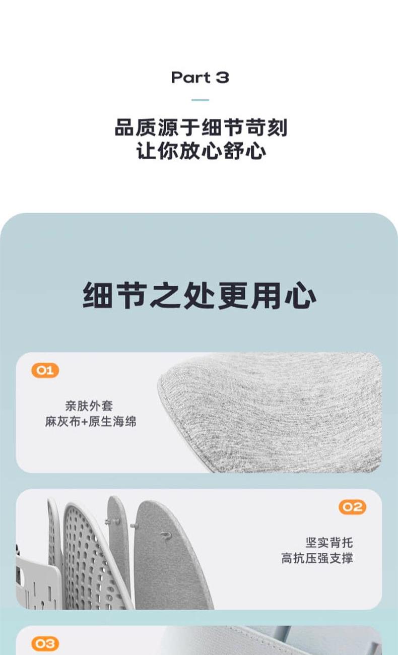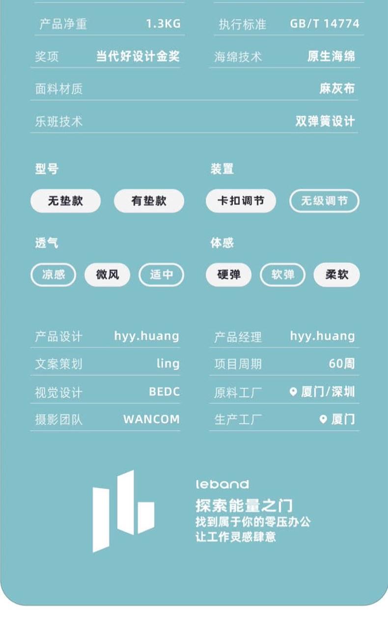 产品规格:有垫款 产品净重:1.3kg 产品尺寸:383*175*415mm 调节档位:5档 乐班技术:双弹簧设计 面料材质:麻灰布 海绵技术:原生海绵 调节方式:卡扣调节 执行标准:GB/T 14774
