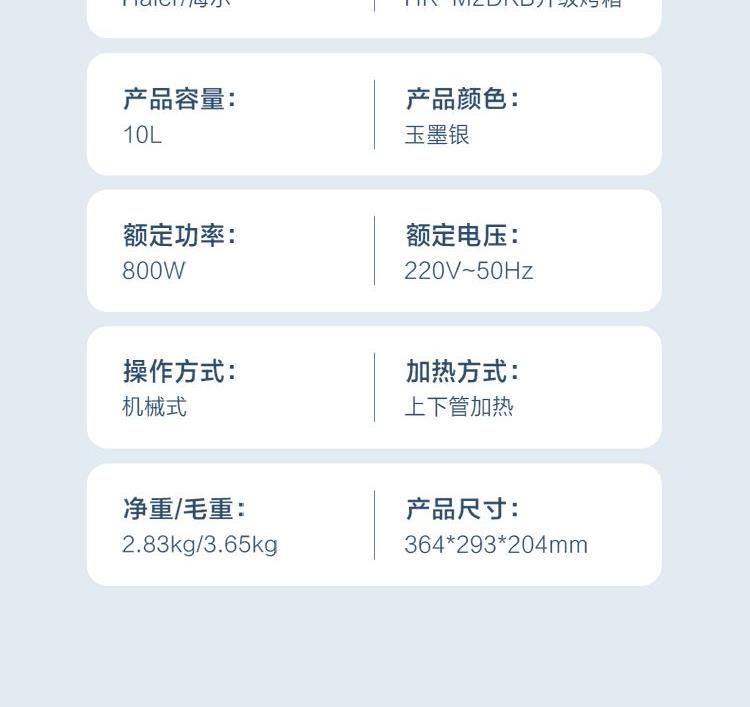 海尔10L电烤箱HK-M2DKB升级