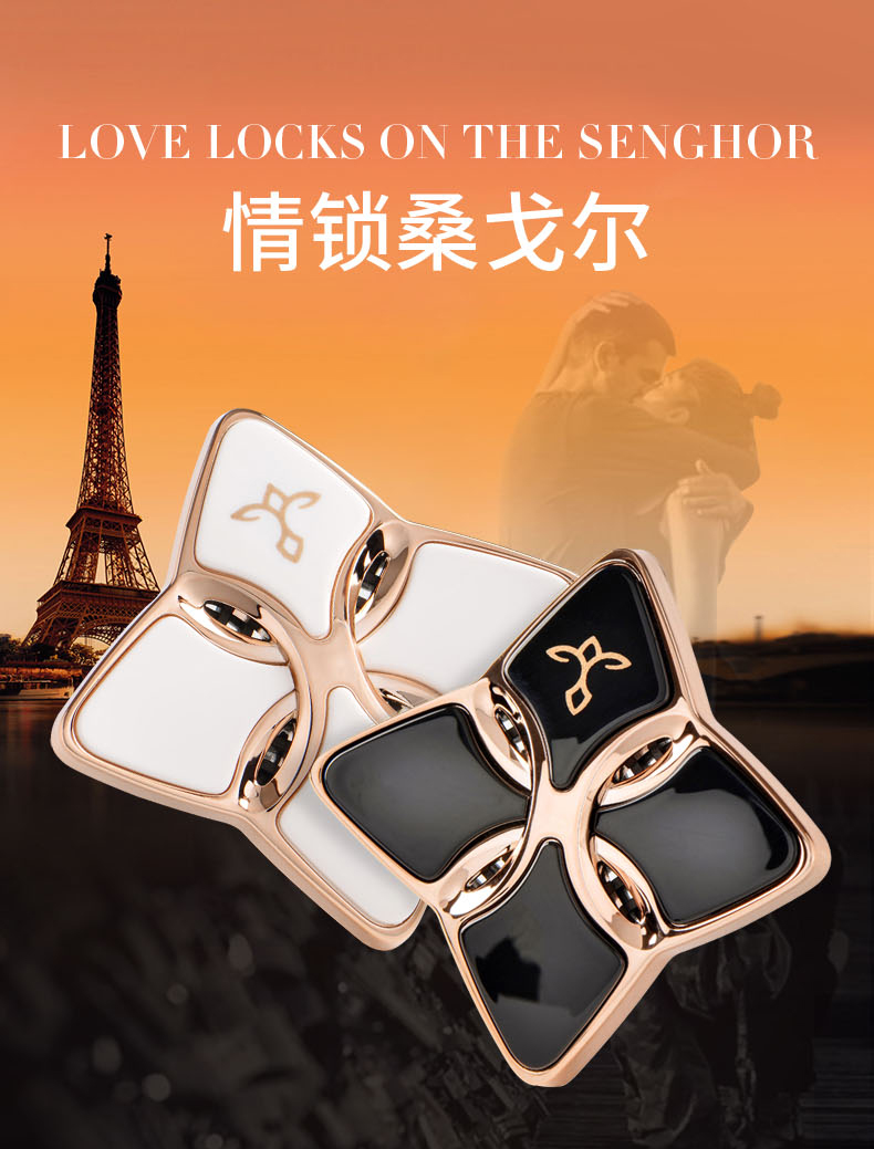 设计灵感 情锁桑戈尔设计灵感源自法国的桑戈尔行人桥,这是法国浪漫的爱情锁桥之一。相传相爱的恋人只要在这里结一把刻有双方姓名的同心锁,就能心心相犀,相爱到老。世界各地的情侣来到这里,为了见证自己的爱情,都会挂上属于他们的锁,祈祷爱情终将圆满。 设计师为了追随这种浪漫的风潮,以心灵相交的锁扣设计来再现爱情的浪漫、自由,表达情侣们祈祷爱情圆满的心愿 设计:法国设计师曾获红点设计大奖设计师设计 香料:法国格拉斯PE集团直供优质香料 工艺:做工精细 BW黑白对装 BB-黑黑对装 可选香型: F-贵族小苍兰 J-素馨茉莉 2盒即4片香片替换装、手袋