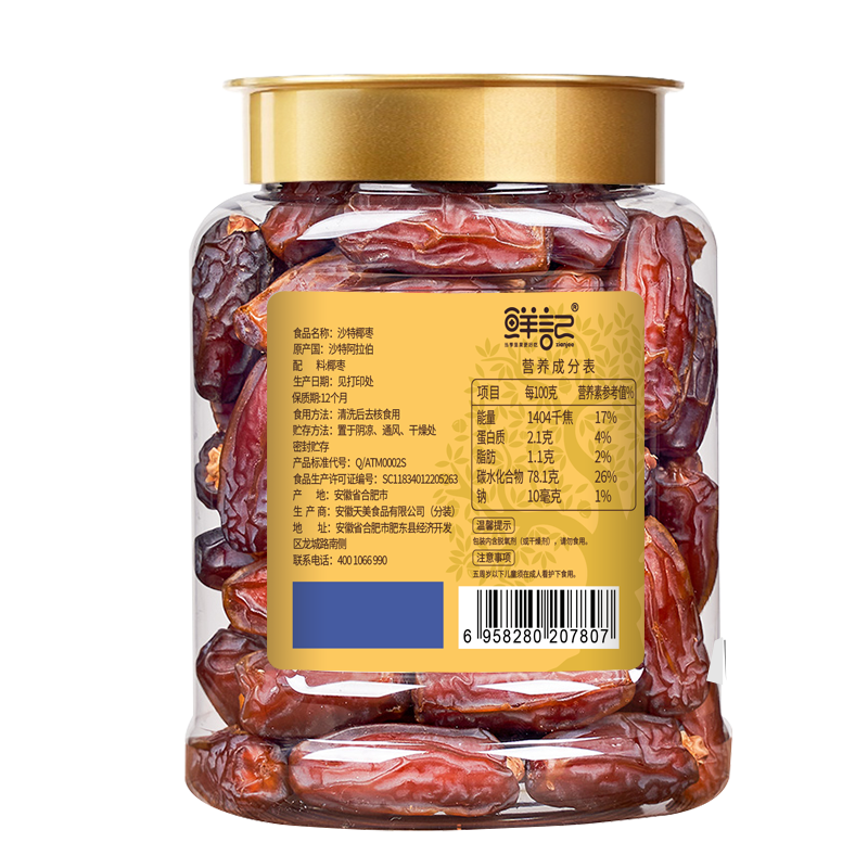 鲜记沙特椰枣428g(博士帽罐装)