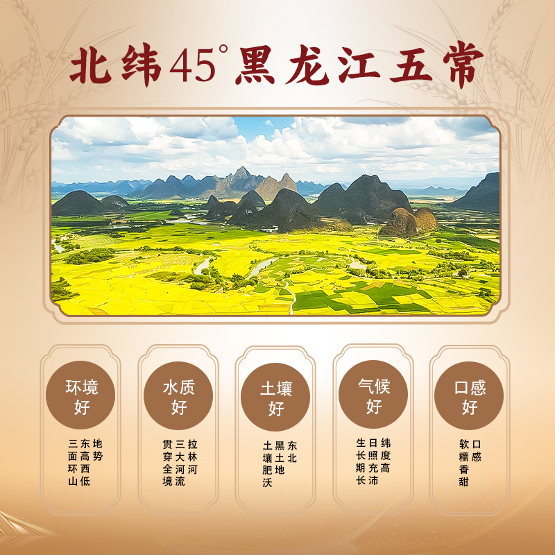 规格:2.5公斤 产品标准代号:GB/T 19266 质量等级:优质一等 米种:原粮稻花香7号 保质期:12个月 尺寸:240*265*73mm 原稻花香7号,湿地种植,甄选稻种,营养丰富,颗粒饱满,米粒均匀,醇厚绵长,芳香四溢,享誉中国,五常源产,来自“稻米之乡之一”的黑龙江。 外观:粒长饱满,晶莹油亮。 口感:米香浓郁,软糯弹牙,甜润回甘 。